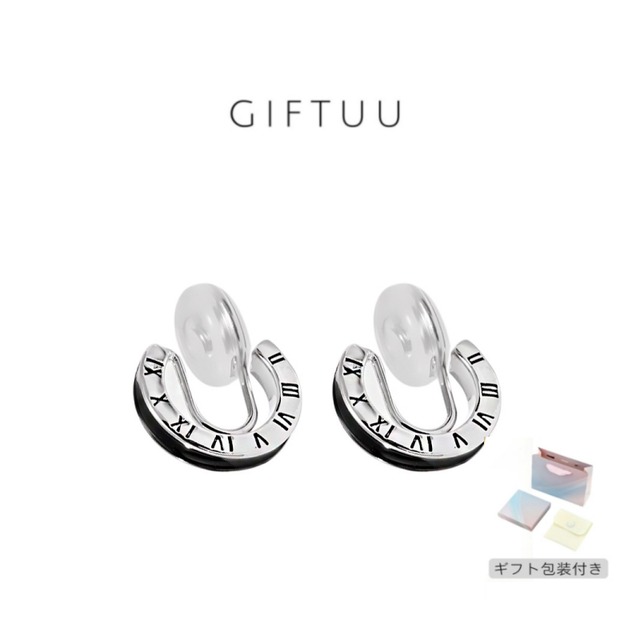 Y 178 . 【耳穴あり/なし対応】ローマ数字 C型フープピアス&イヤーカフ|ブラックライン|ミニマル・ユニセックス|冷淡系デザイン