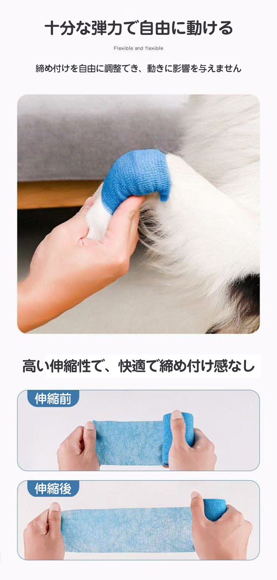 ■ 機能:四肢を固定し、適度な圧力で止血をサポートし、ケガの応急処置にも対応、外出時の汚れ防止にも使える