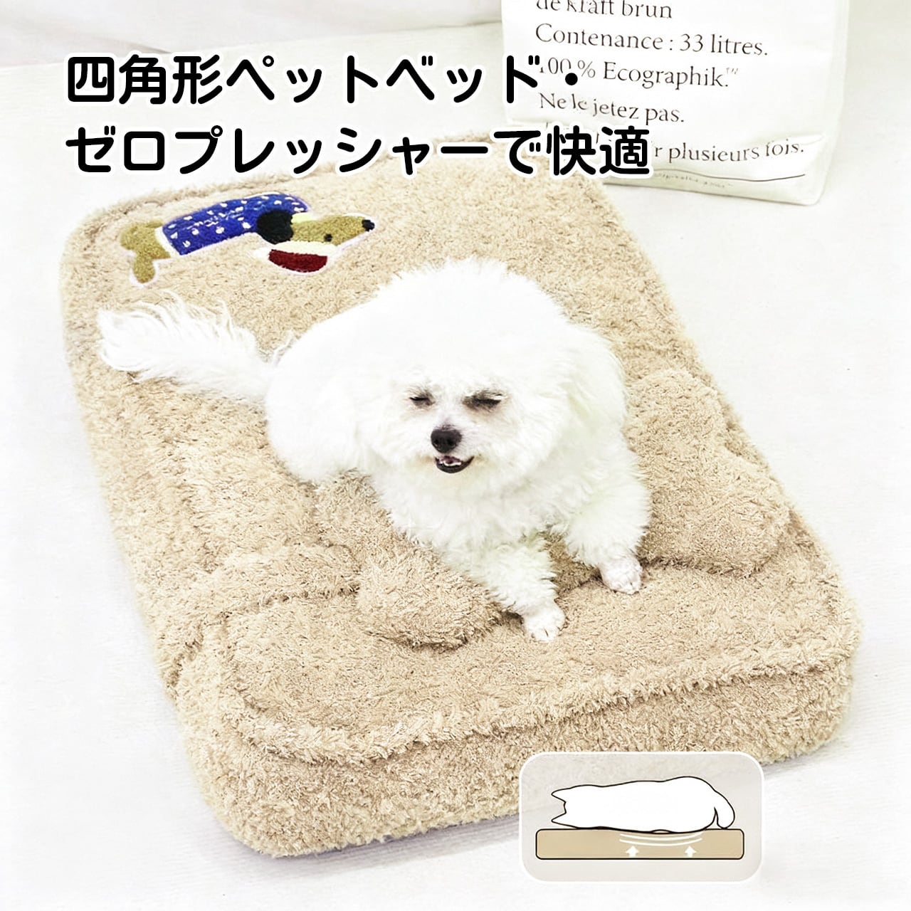 1号セット:正方形ベッド67cm×4cm7×15cm + 骨型枕32cm×10cm(体重30kg以下のペット向け)