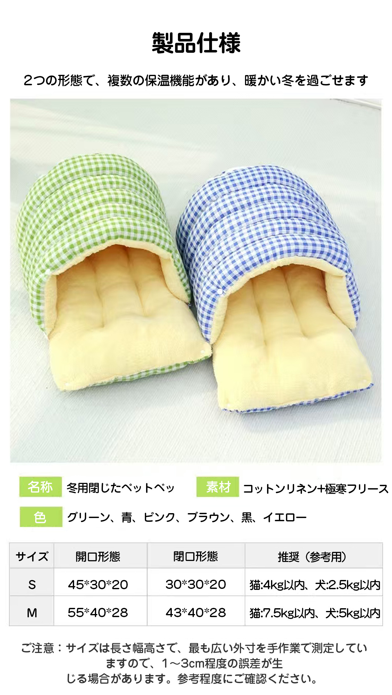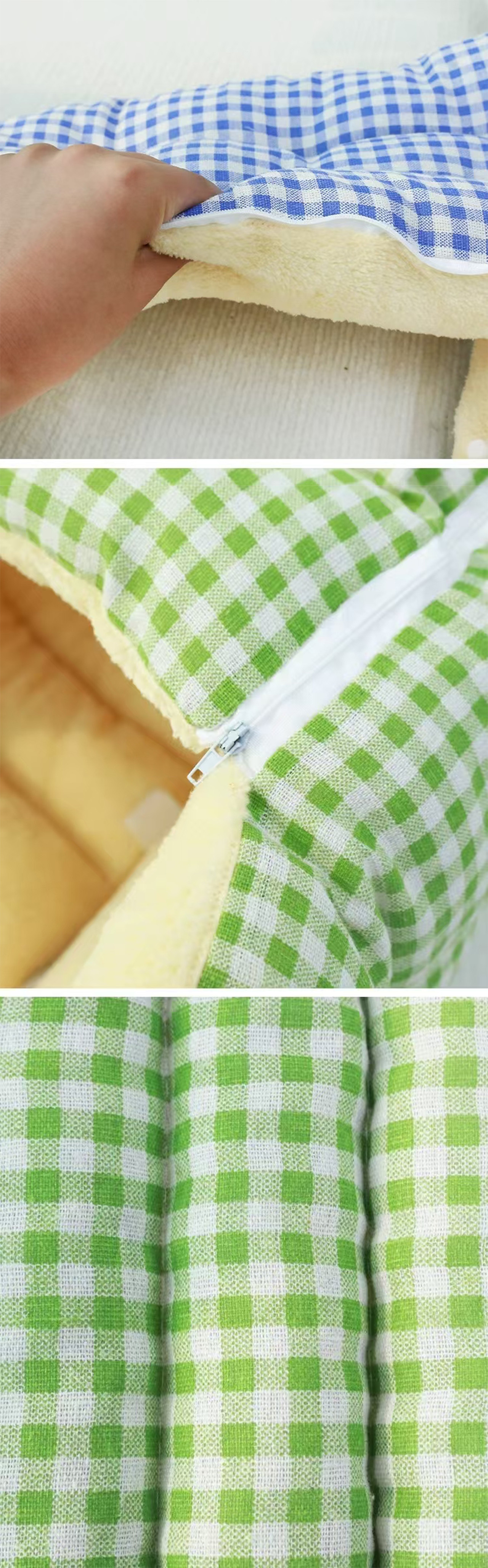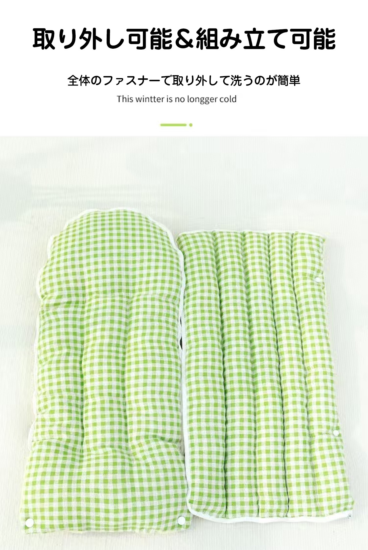冬は冷えで眠りが浅くなる → 内側の北極フリースが体温を逃さずキープ。厚手のコットンリネンで二重保温し、愛犬・愛猫をやさしく包み込みます。