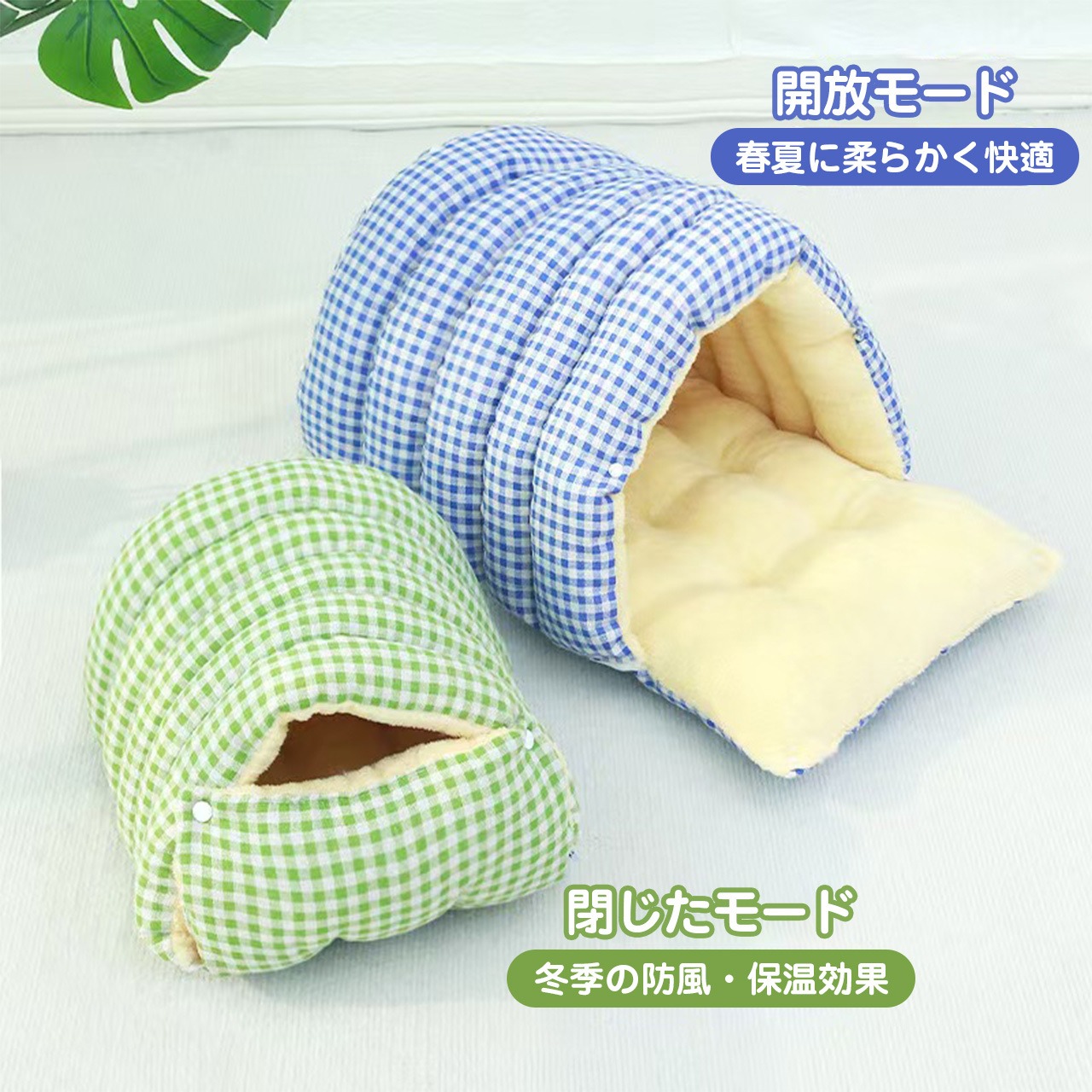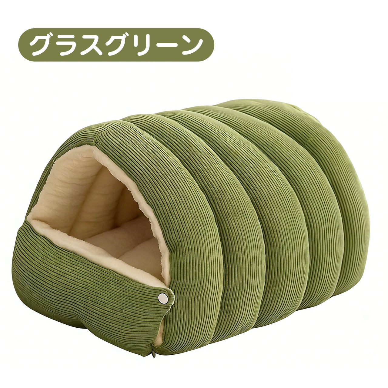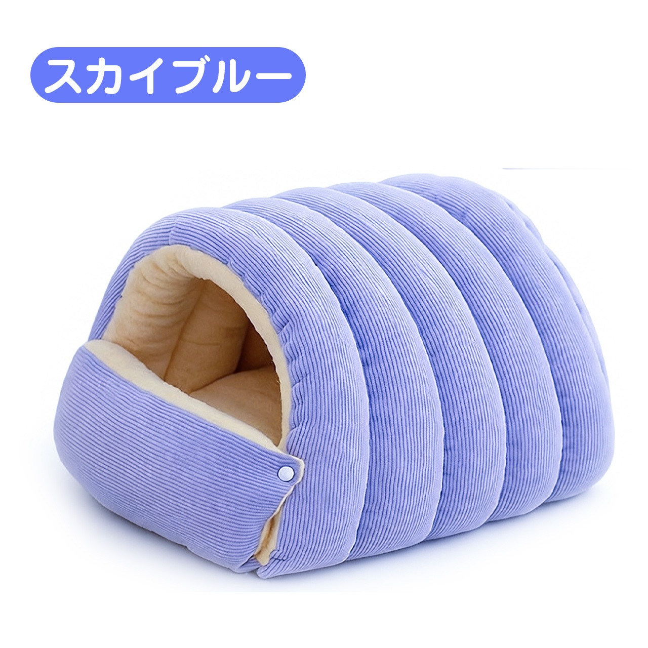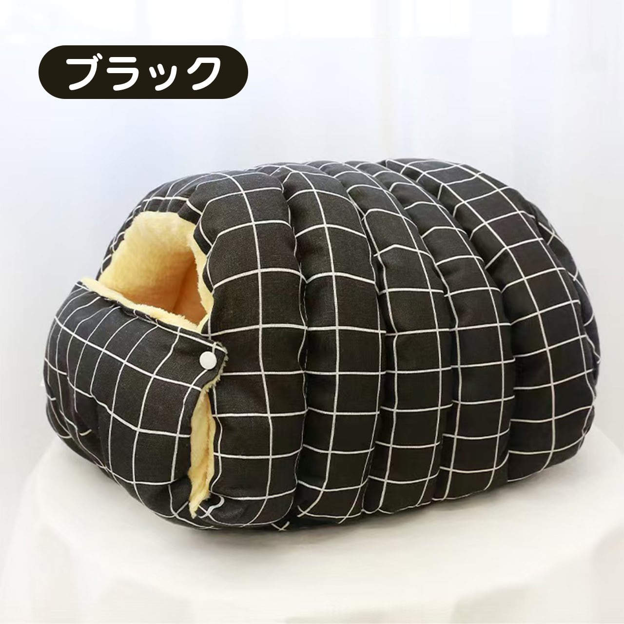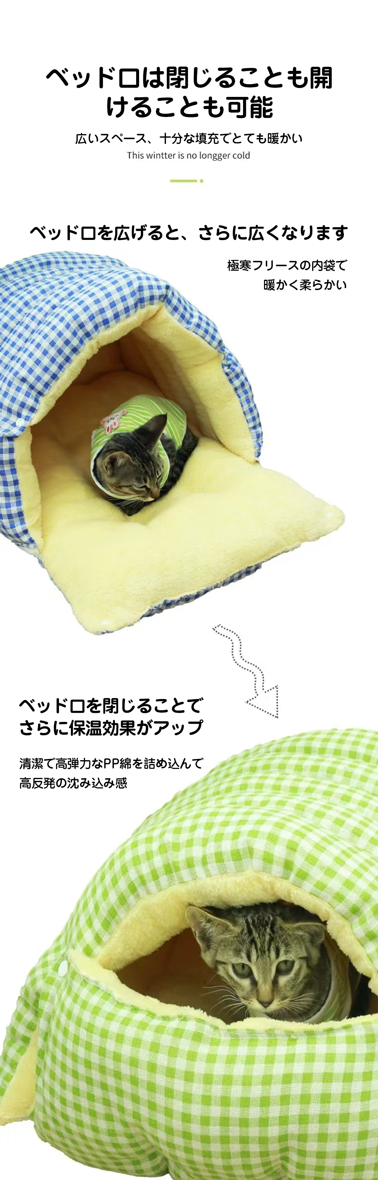 入口が狭いと窮屈でストレスに → マジックテープで入口を開閉でき、好みに合わせた空間に調整可能。ゆったり設計でぽっちゃりペットも快適に眠れます。