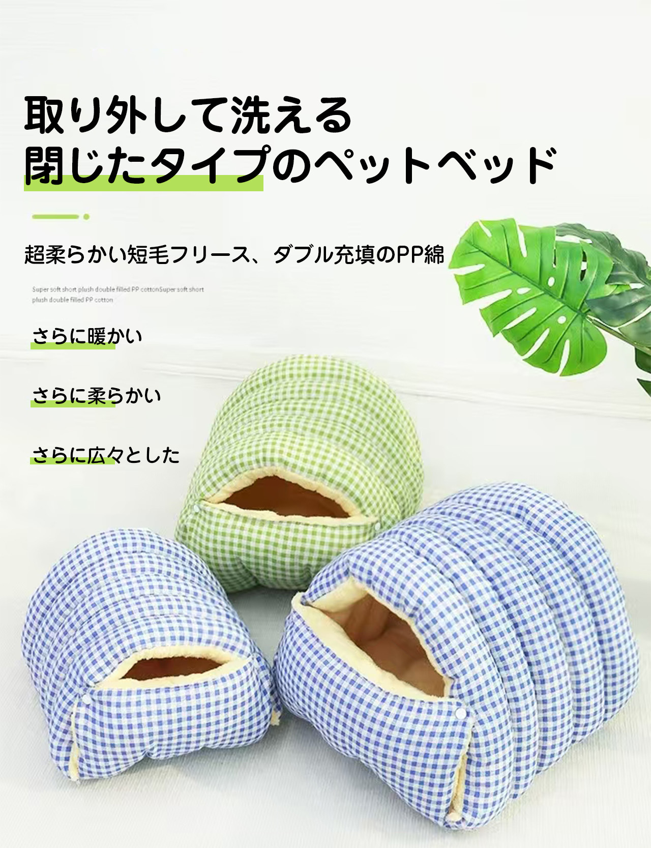 安価な素材は抜け毛や毛玉が発生 → 北極フリースは柔らかく、毛が抜けにくい仕様。清潔で快適な寝床を実現し、飼い主のお手入れもラクラク。