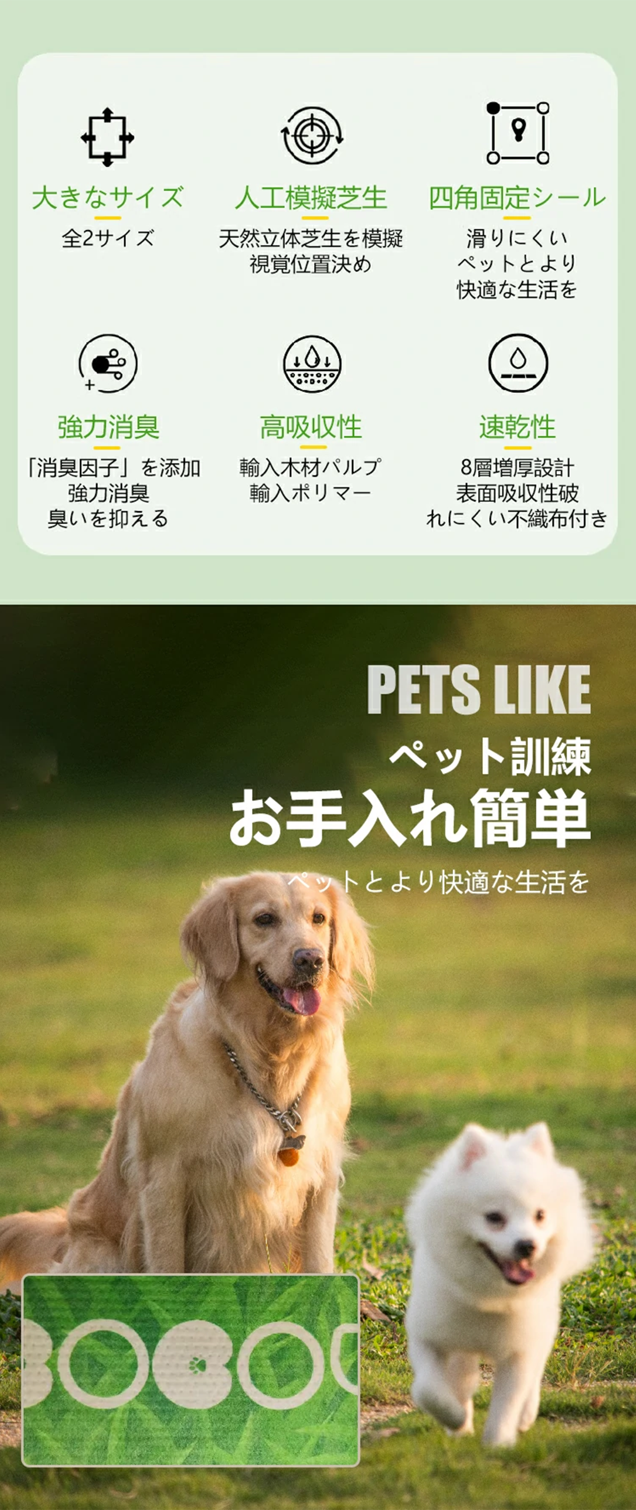 192 .犬用おむつ超特大芝生用おむつ背に吸水消臭厚手ペット用おむつ犬用おむつ(犬、猫、その他の小動物;特注芝生印紙、輸入絨毛パルプ、輸入高分子、消臭因子、誘導因子、耐耐不織布、防漏PE底膜、四角定位貼り付けます) | COCOFID