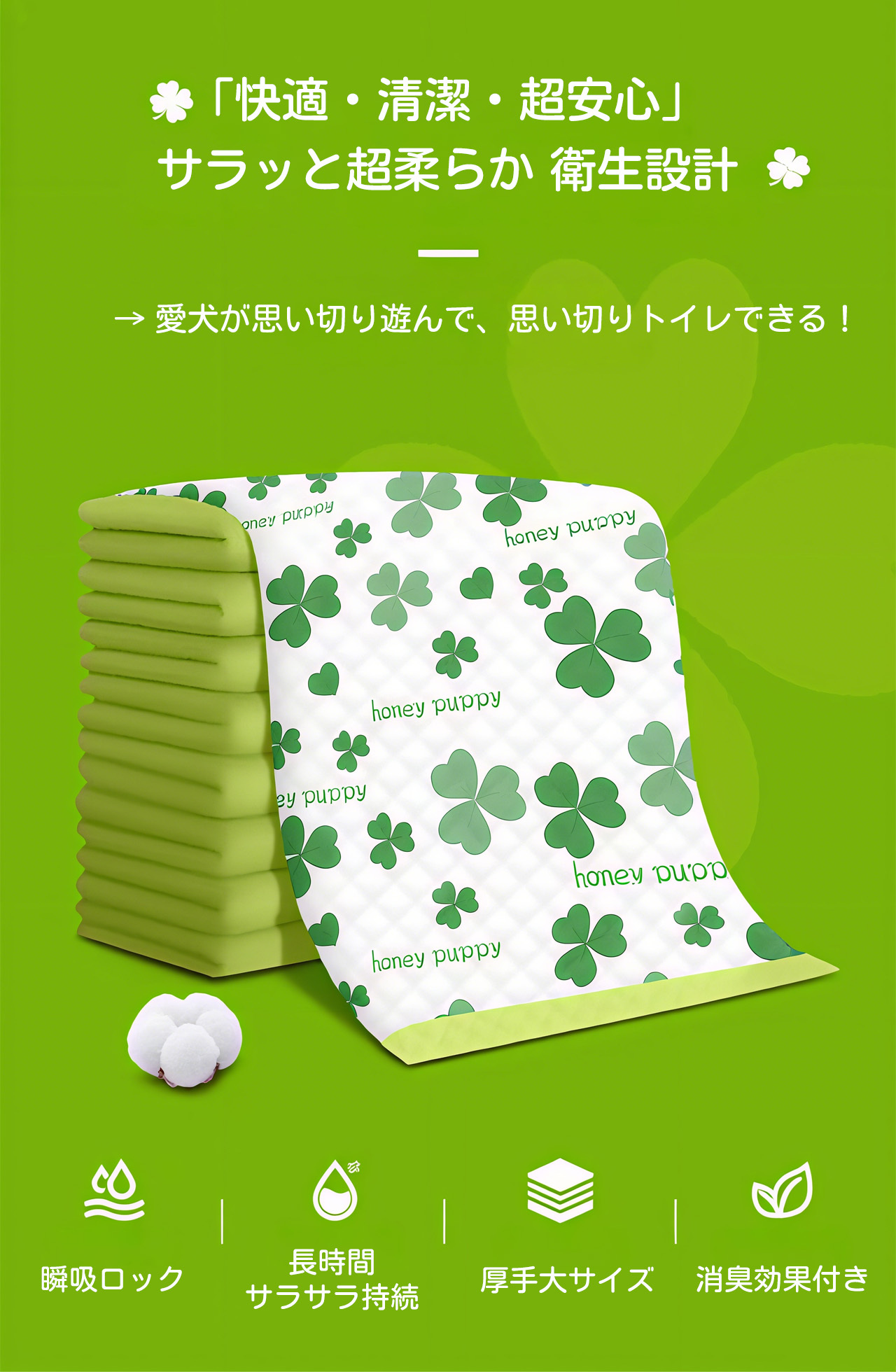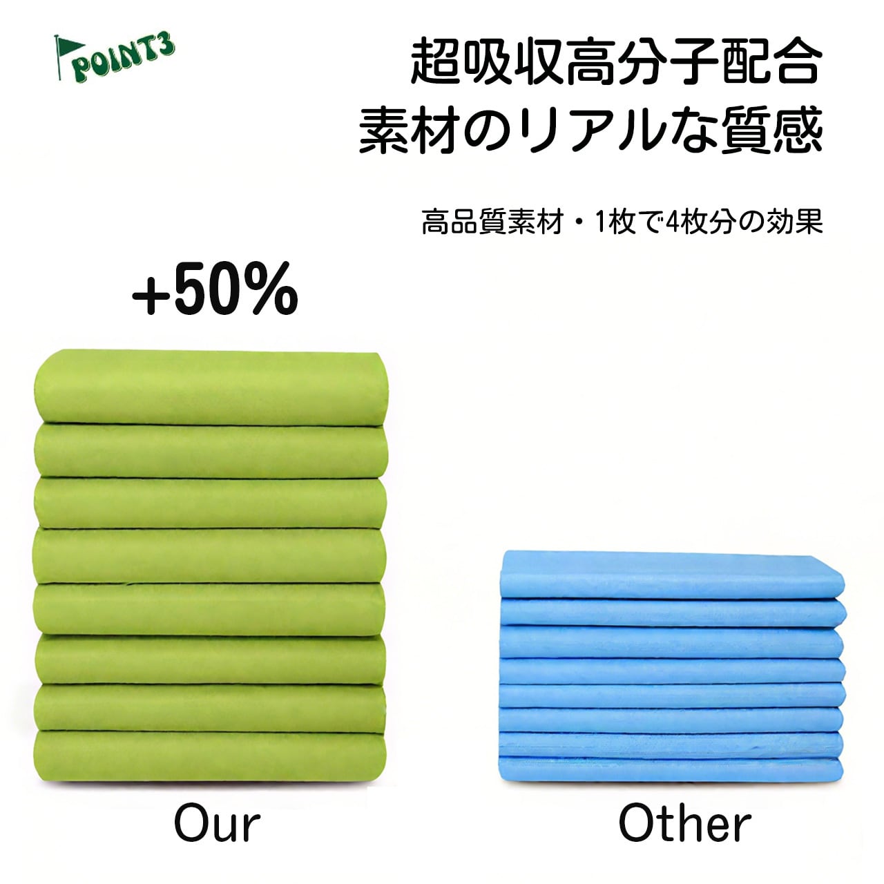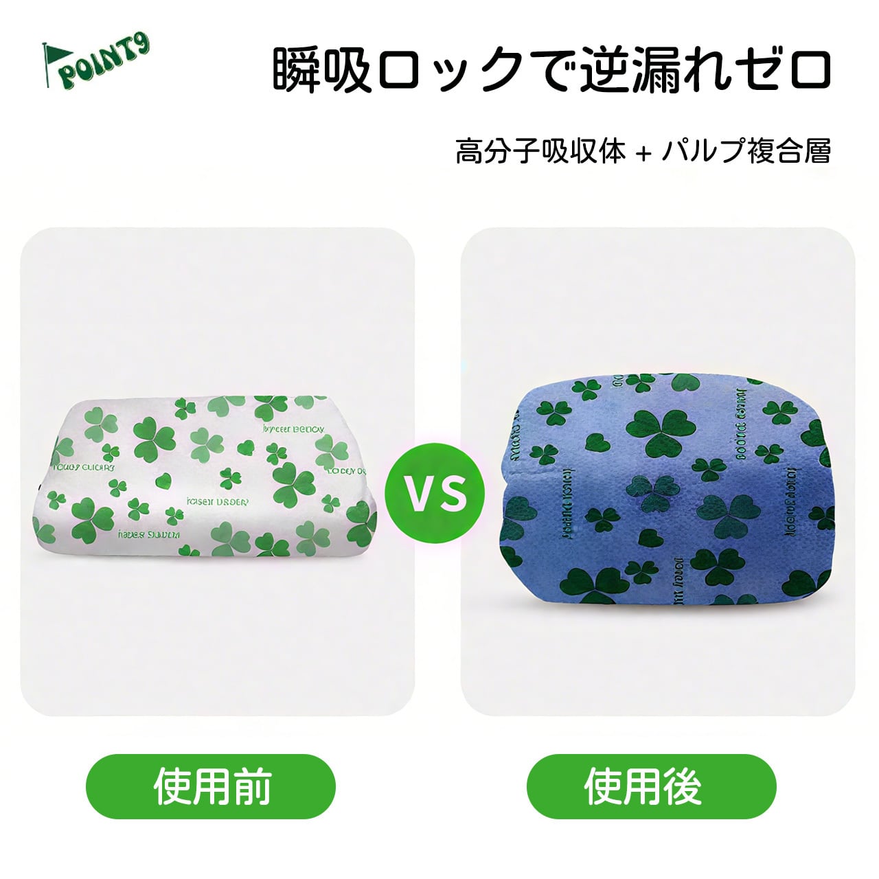 ✅ 5層吸水構造:不織布+パルプ+SAP+吸収層+PEフィルムの多層構造。約3秒で瞬間吸収、吸収量は最大1500ml/㎡!