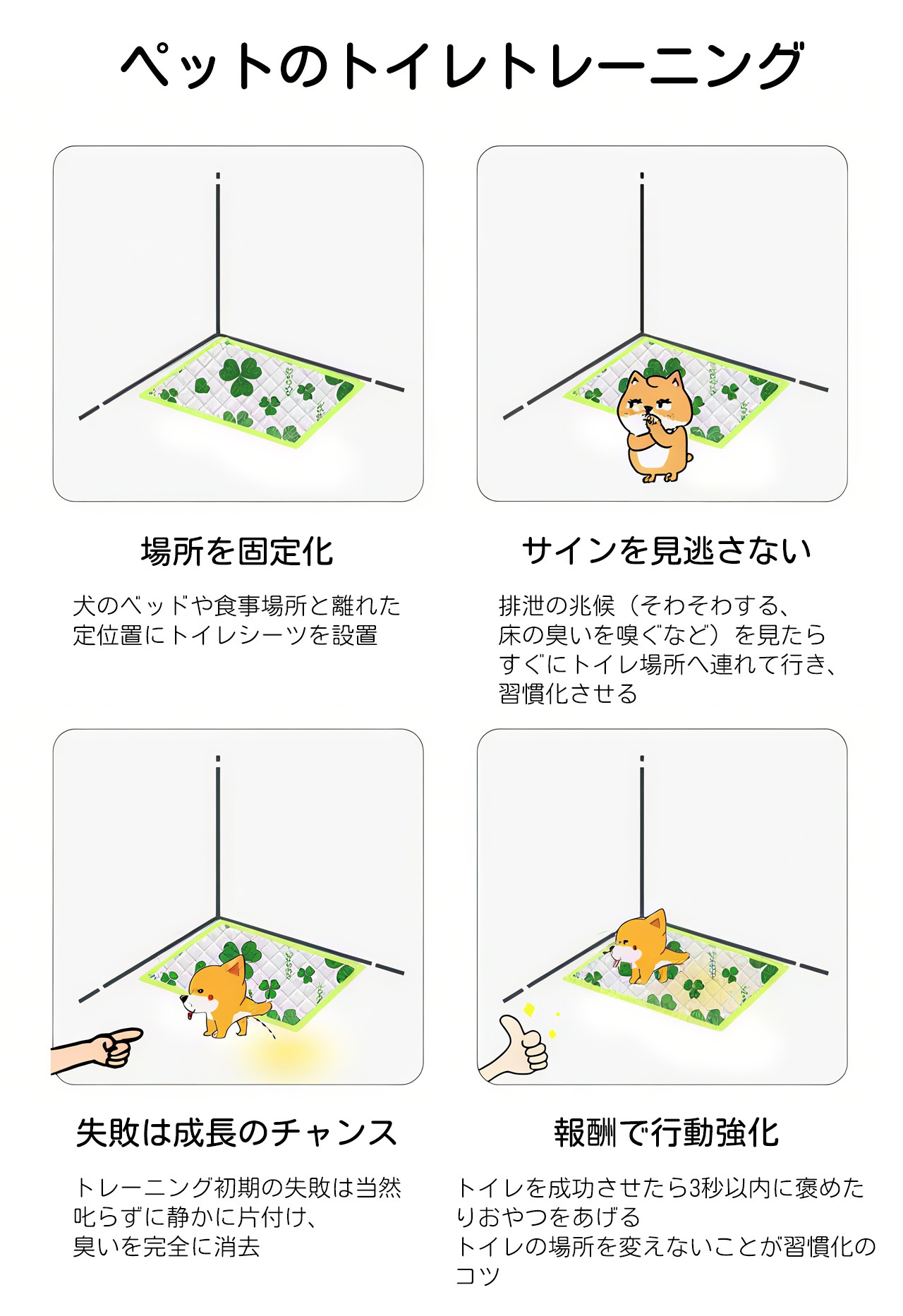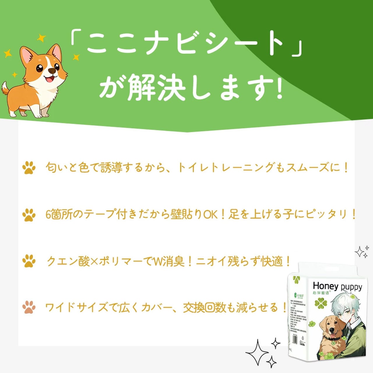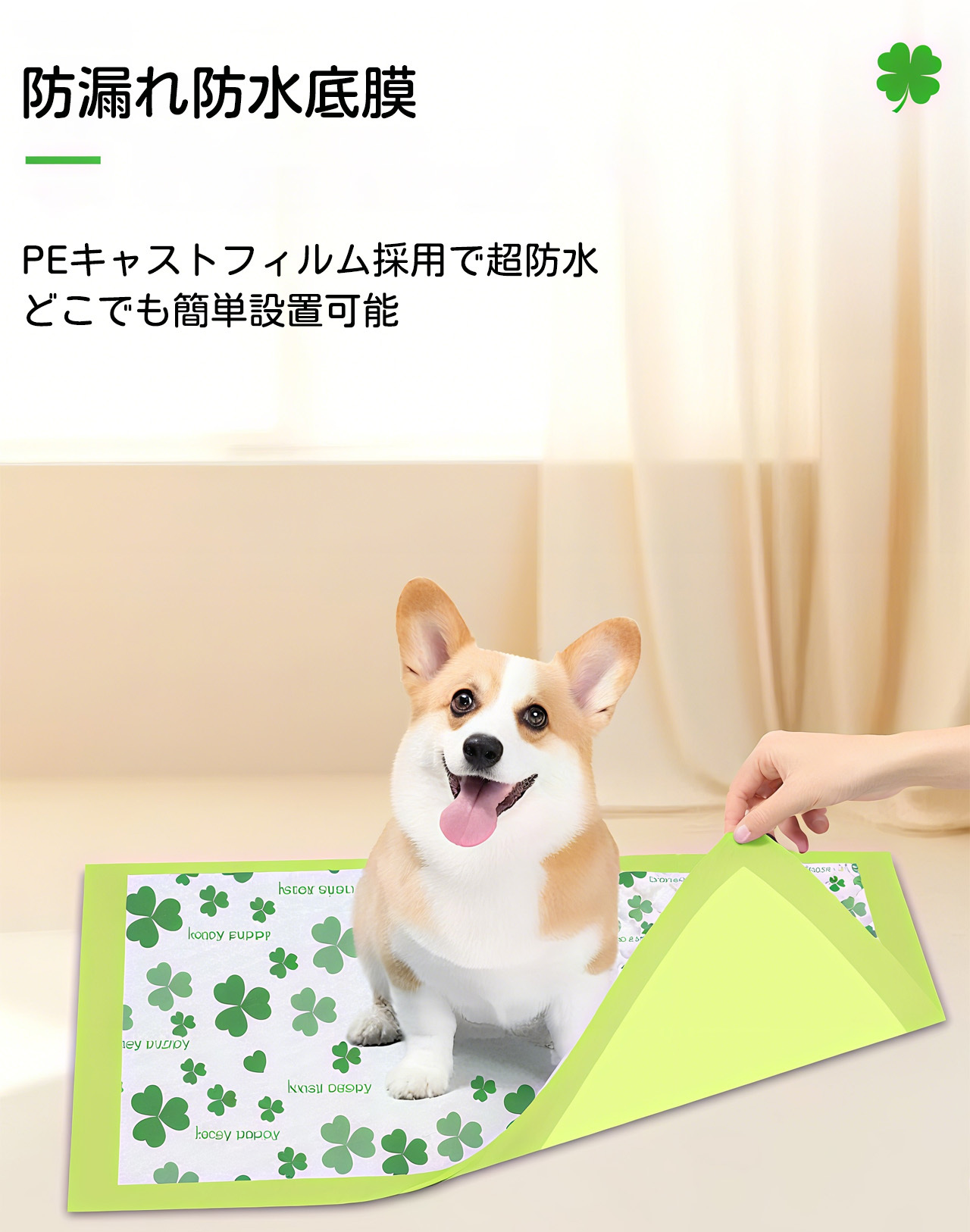 ✅ 漏れ防止&固定機能:厚手の防漏エッジ加工で尿のはみ出しを防ぎ、四隅の粘着シールでズレ・いたずら防止。