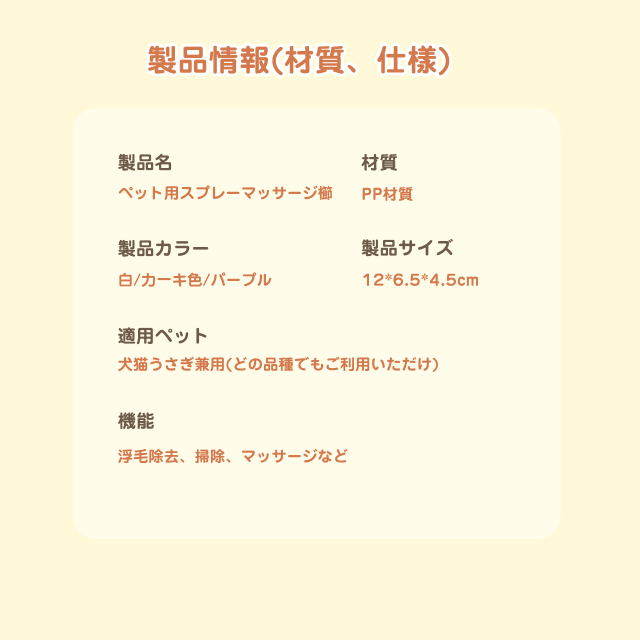 ■ 品名:ペット用スプレー式マッサージブラシ(電動)