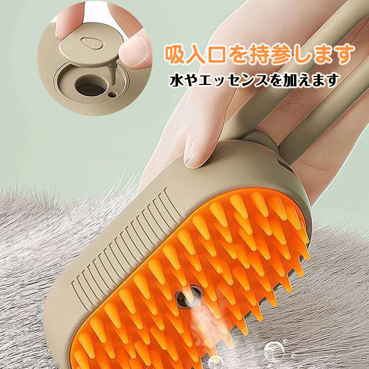 スプレー:ワンタッチで霧状スプレー、毛を湿らせる
