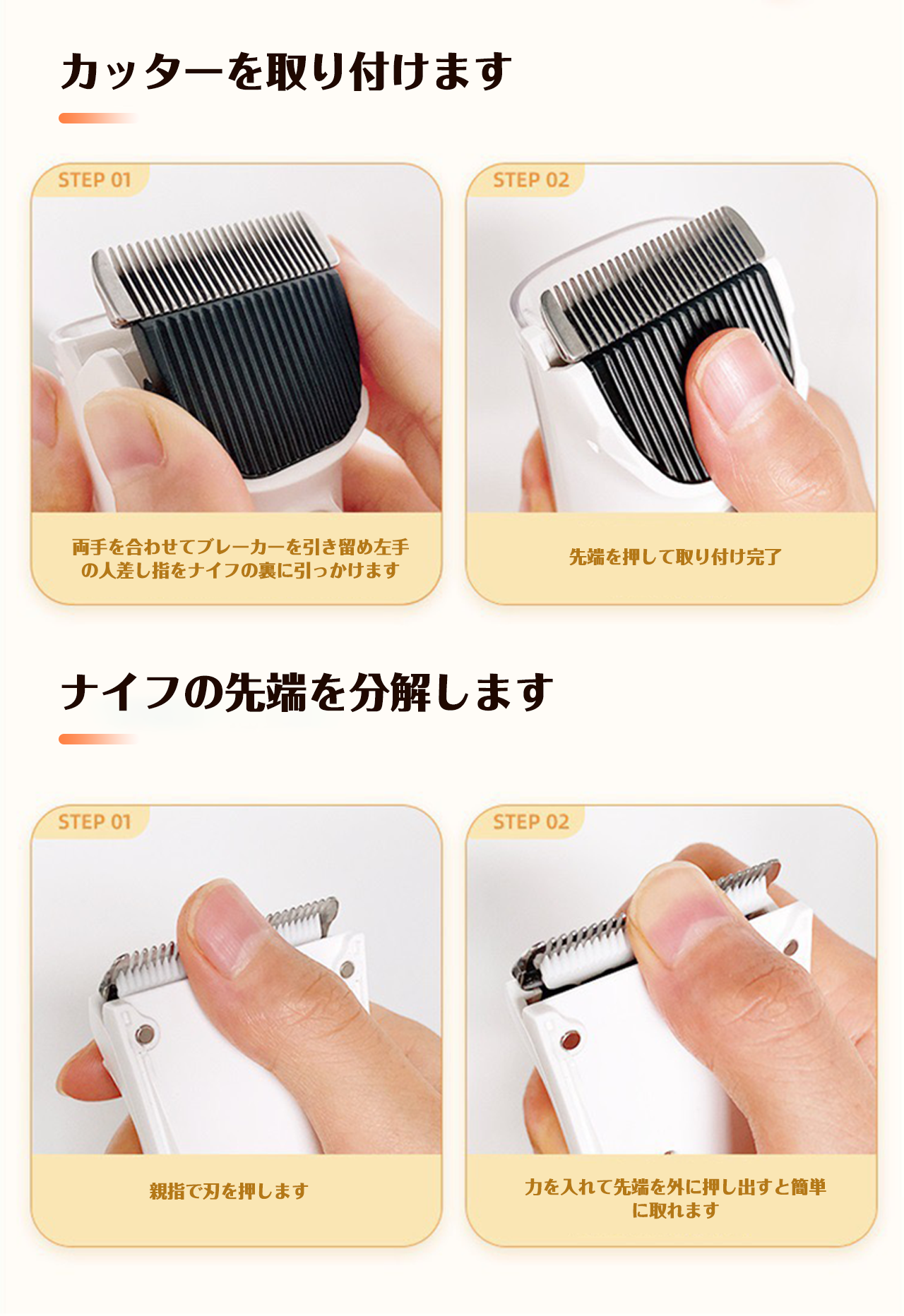 → 1.0~1.9mmの4段階微調整+2種類のアタッチメント付き。夏の短毛カットから長毛の整えまでこれ1台で対応。