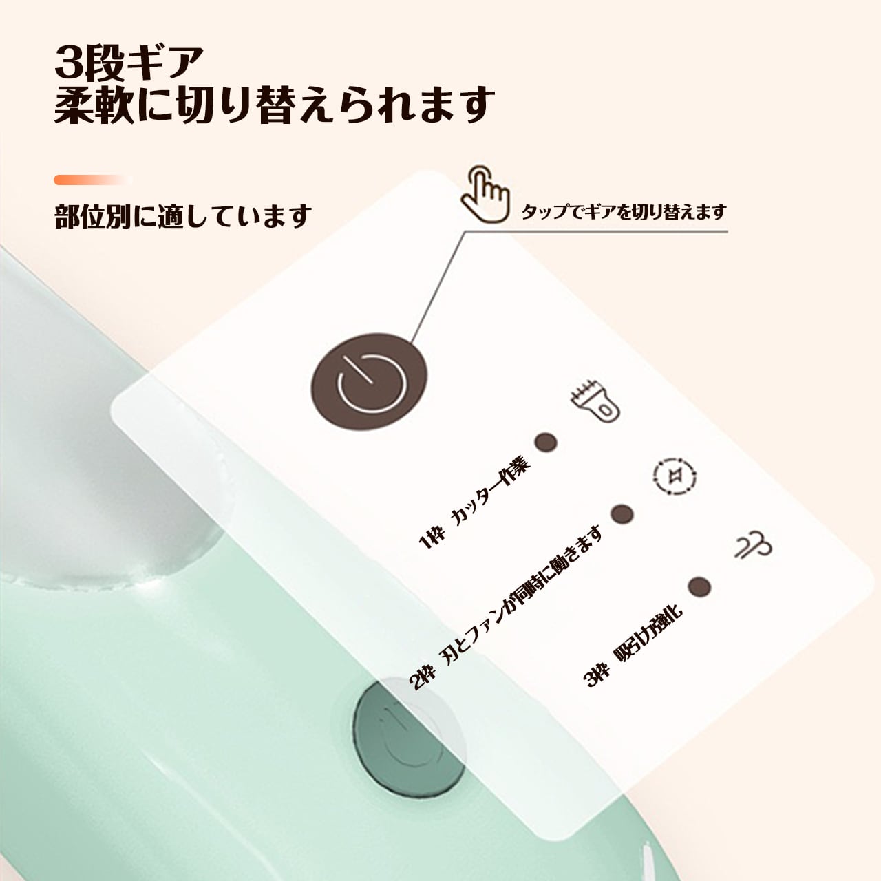 → 強力ファン+大容量透明毛収集ケースで、カットした毛を瞬時に吸引飛び散り90%削減、衛生的でお手入れ簡単。