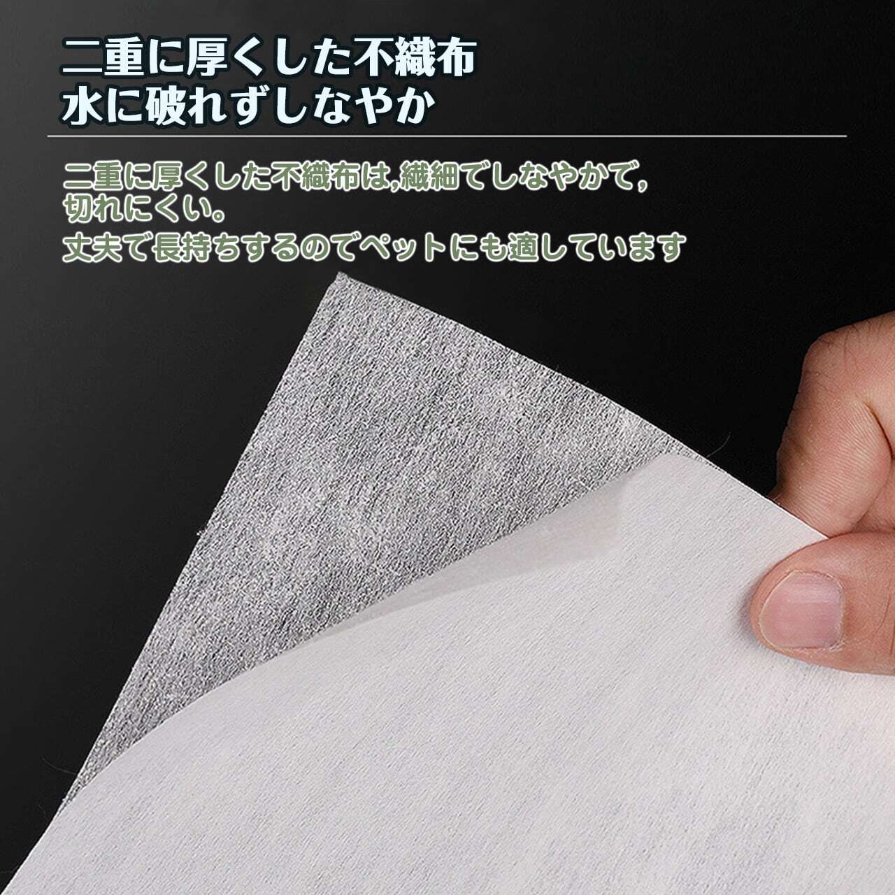 → 二層不織布で耐久性アップ。強く引っ張っても破れにくく、後処理もラク。