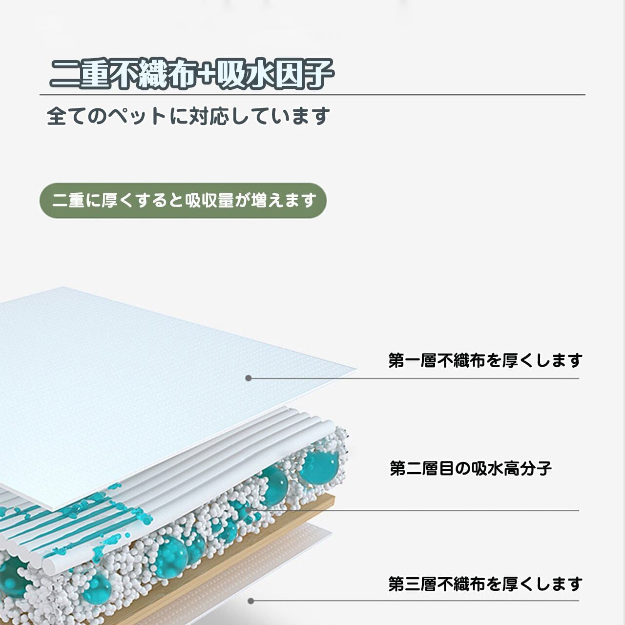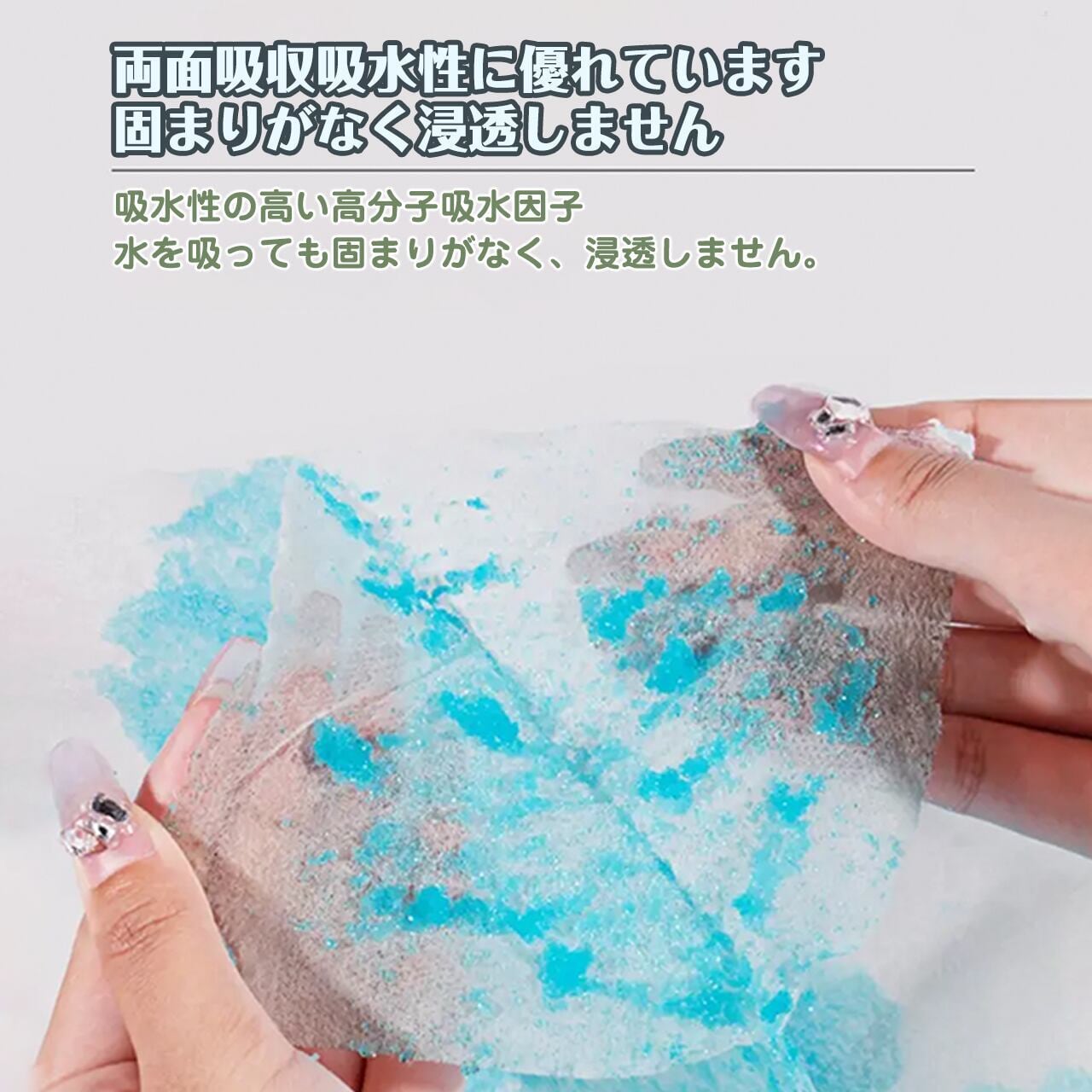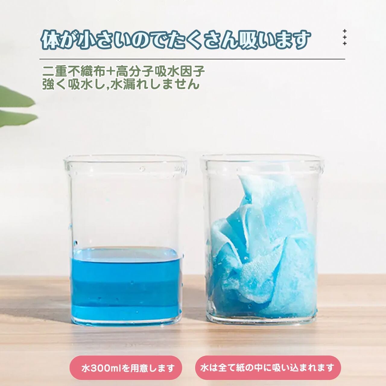 → 高分子ポリマーが瞬間吸収、最大300ml保持!吸水力500%アップで1枚で完結。