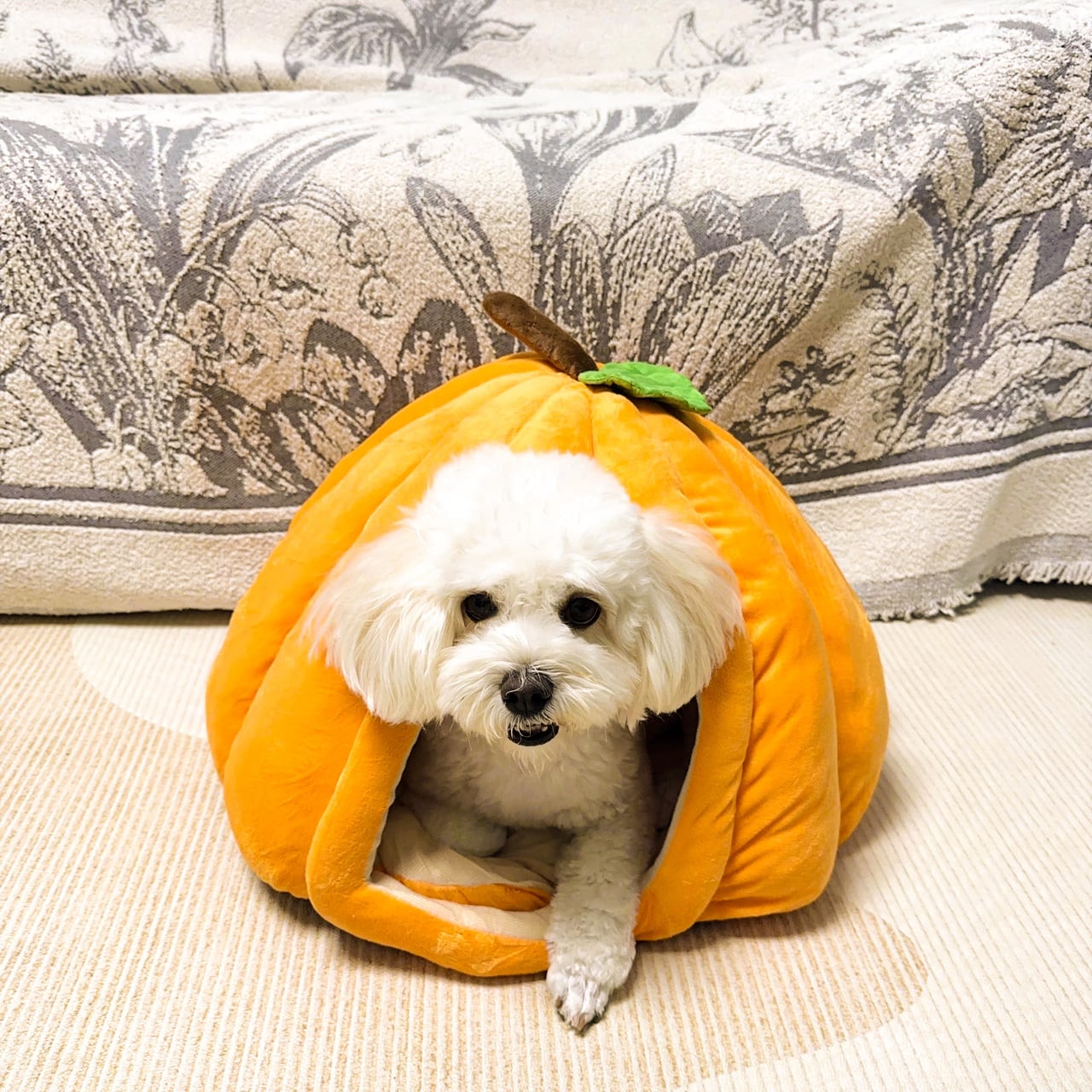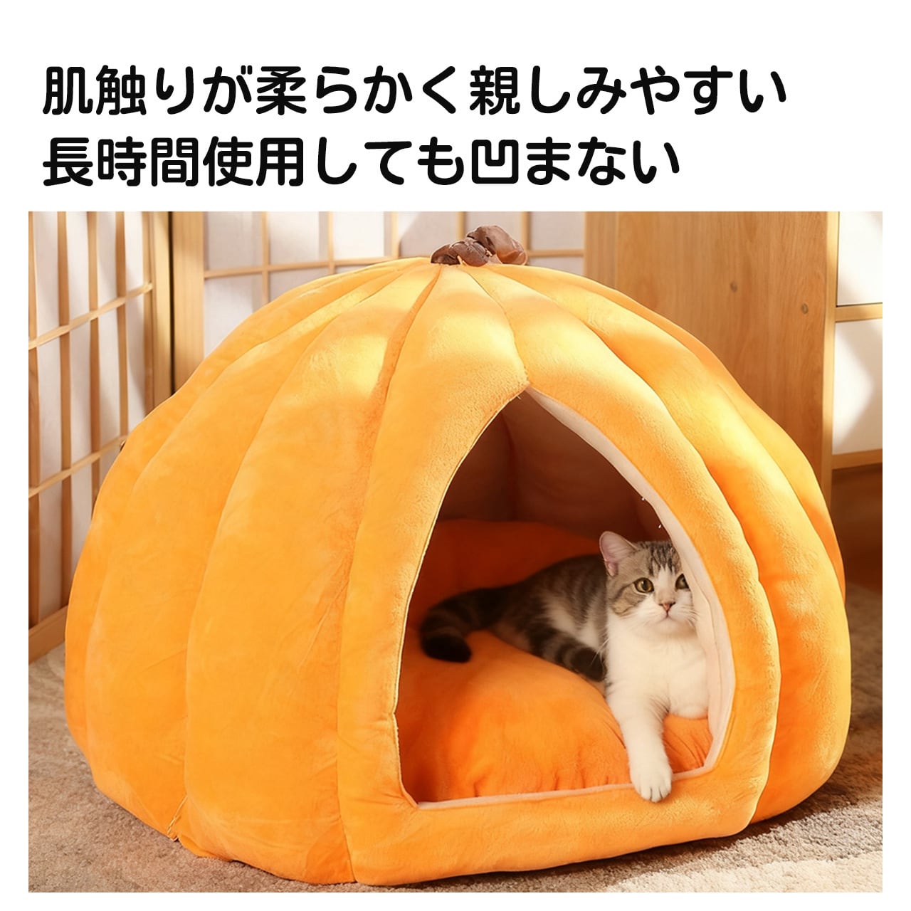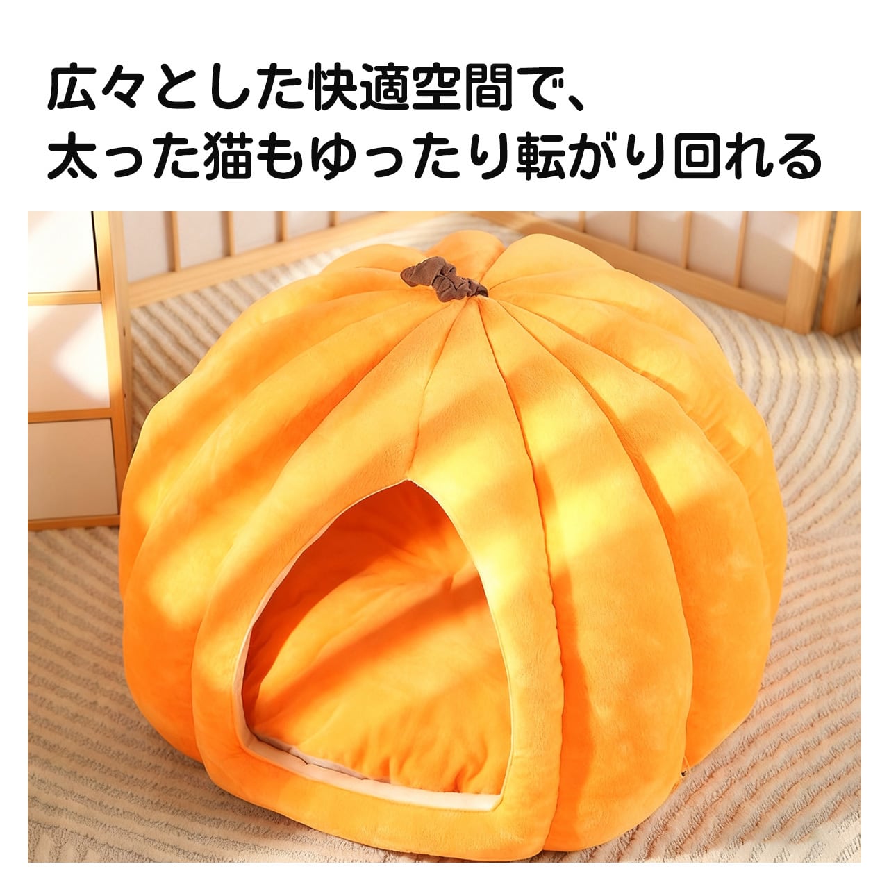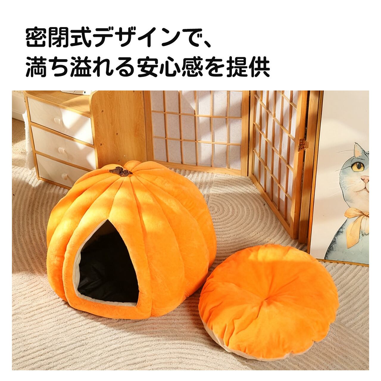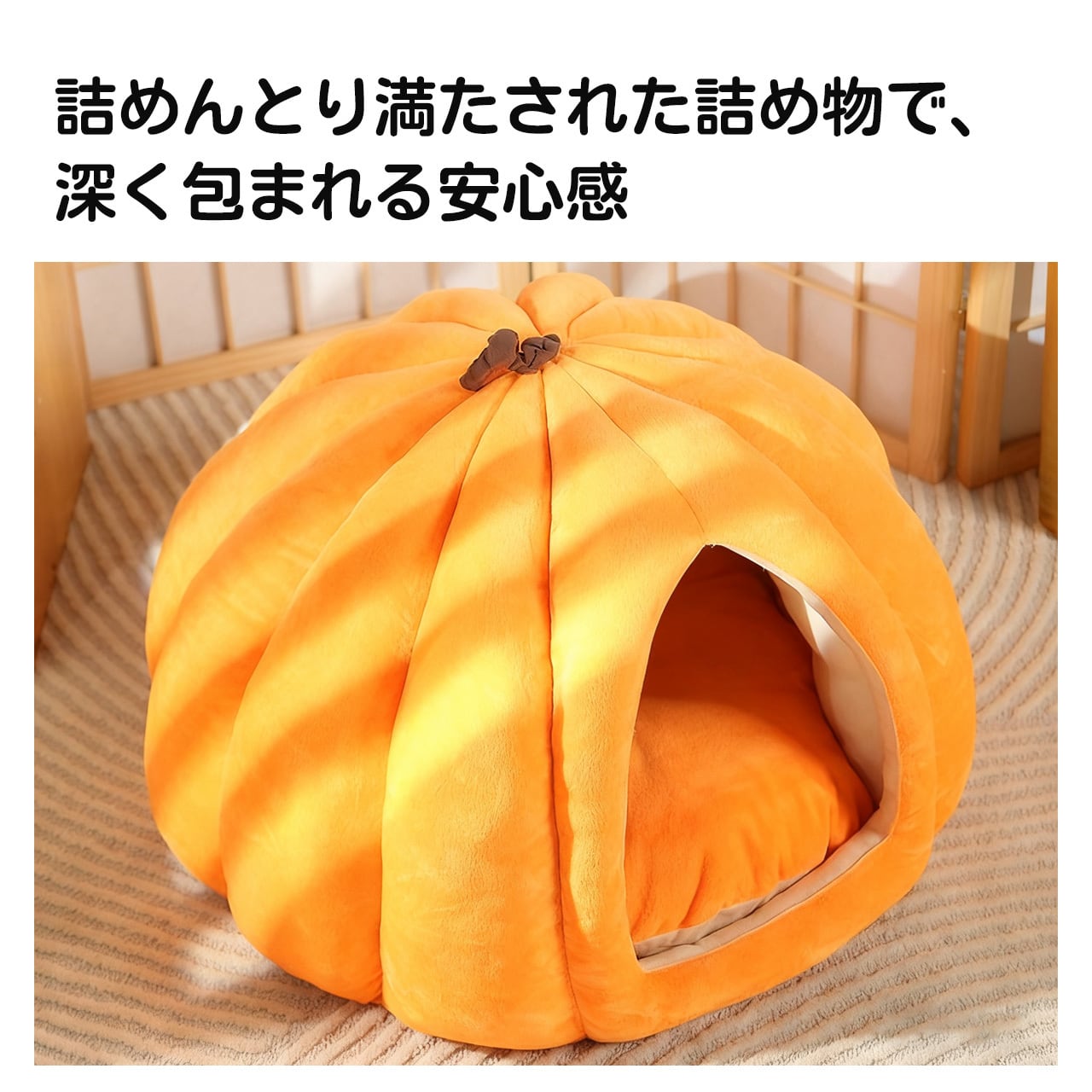 → 温かみのある南瓜型と暖色調で、ペットベッドだけでなくインテリアにもぴったり。癒し効果倍増!