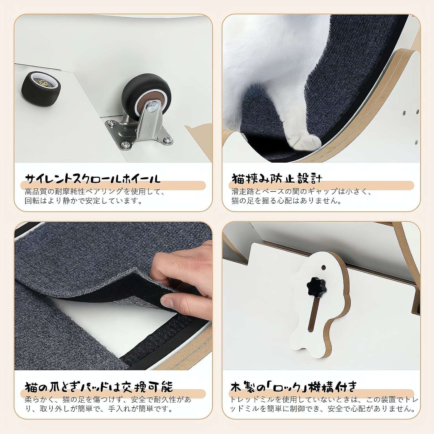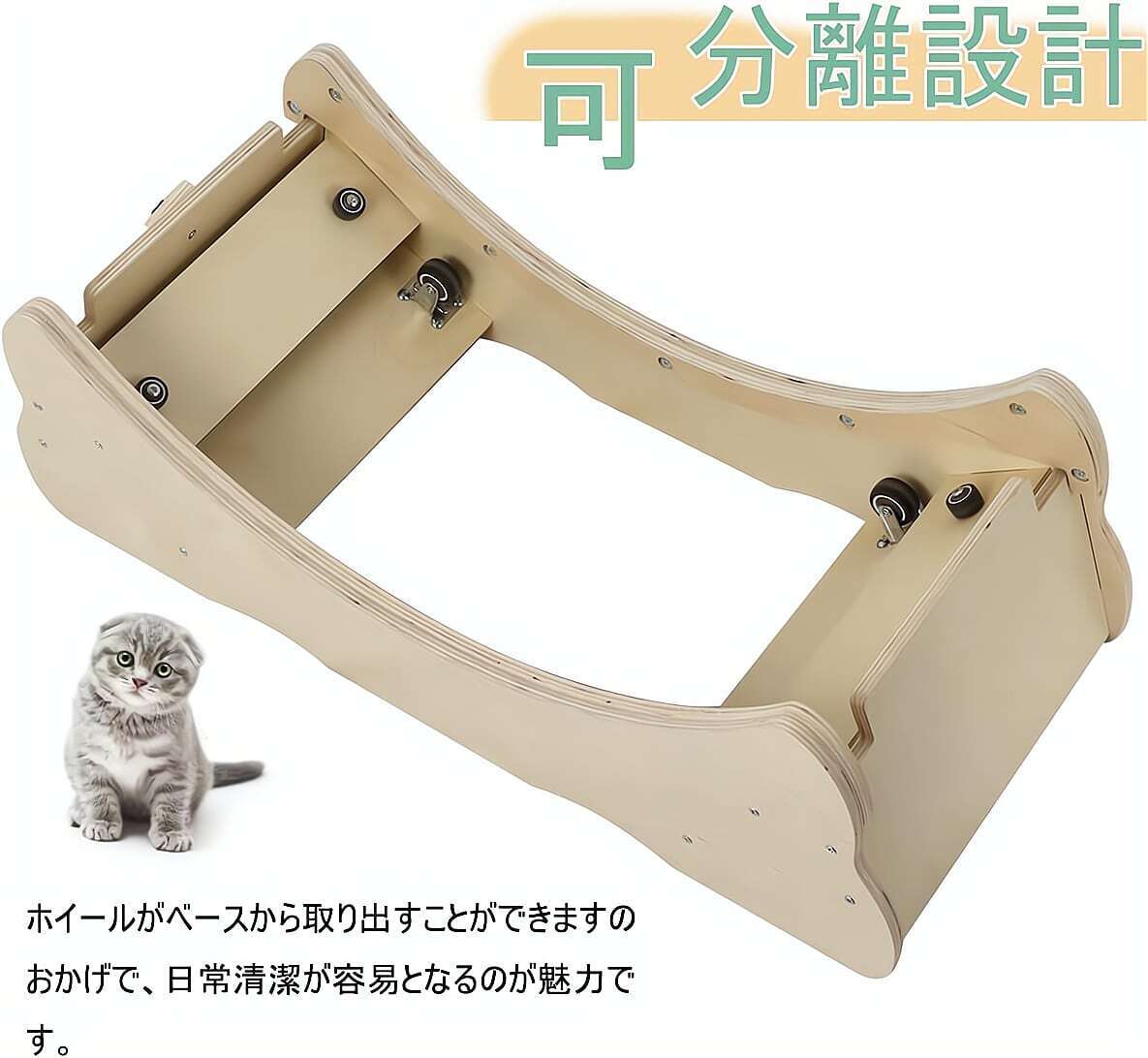 取り外し可能な厚手爪とぎカーペットは、マジックテープ固定で着脱ラクラク