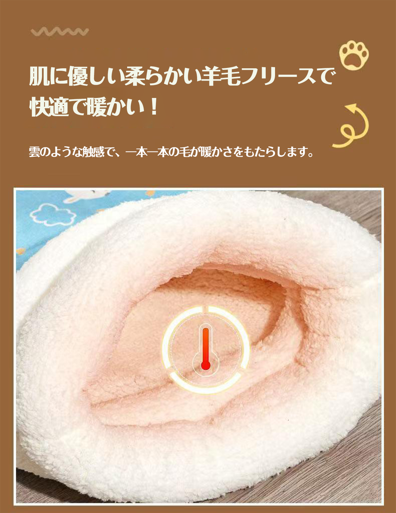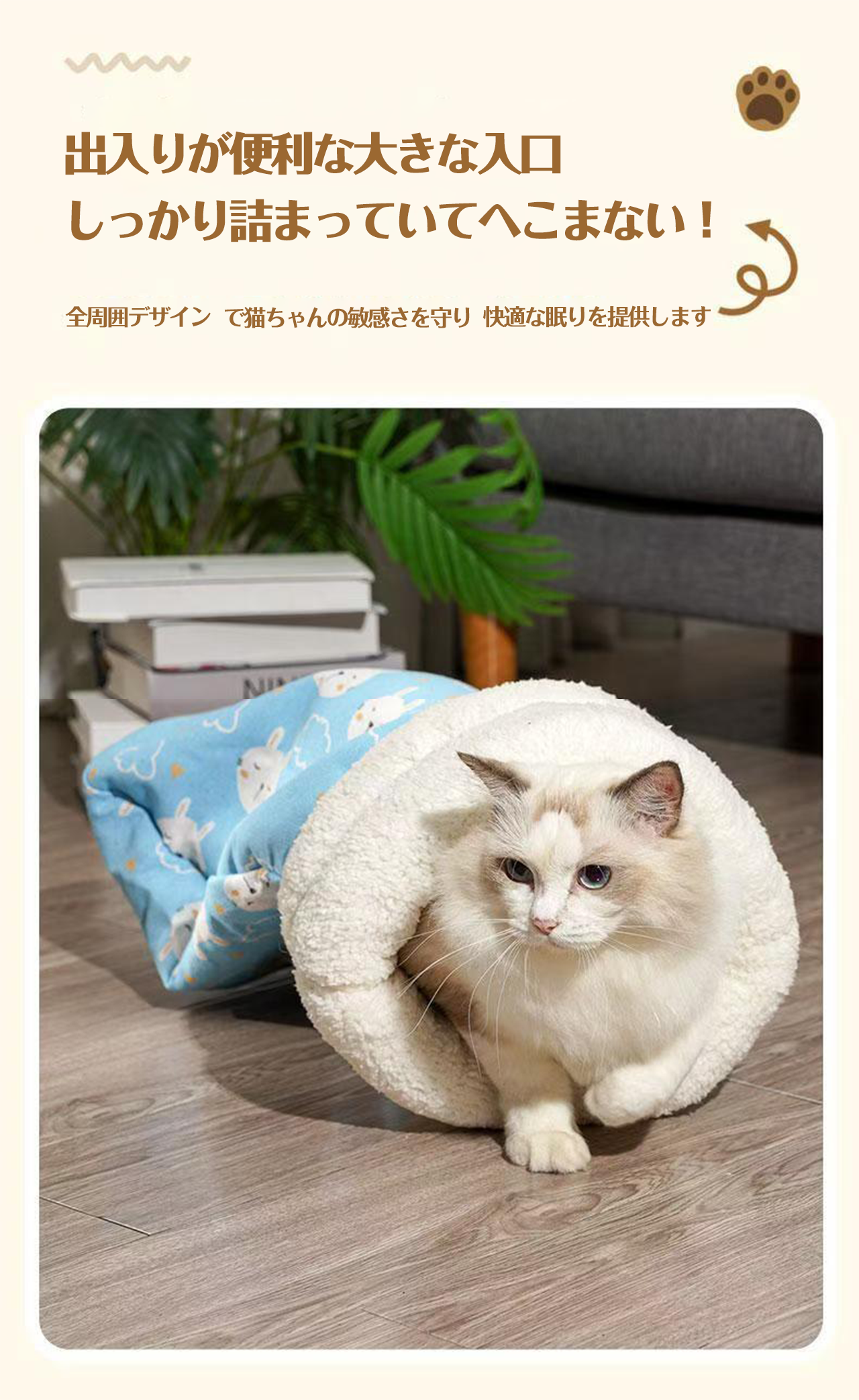 → 大きめ入口でぽっちゃり猫もスムーズ。シープボアが肌に優しく摩擦レス