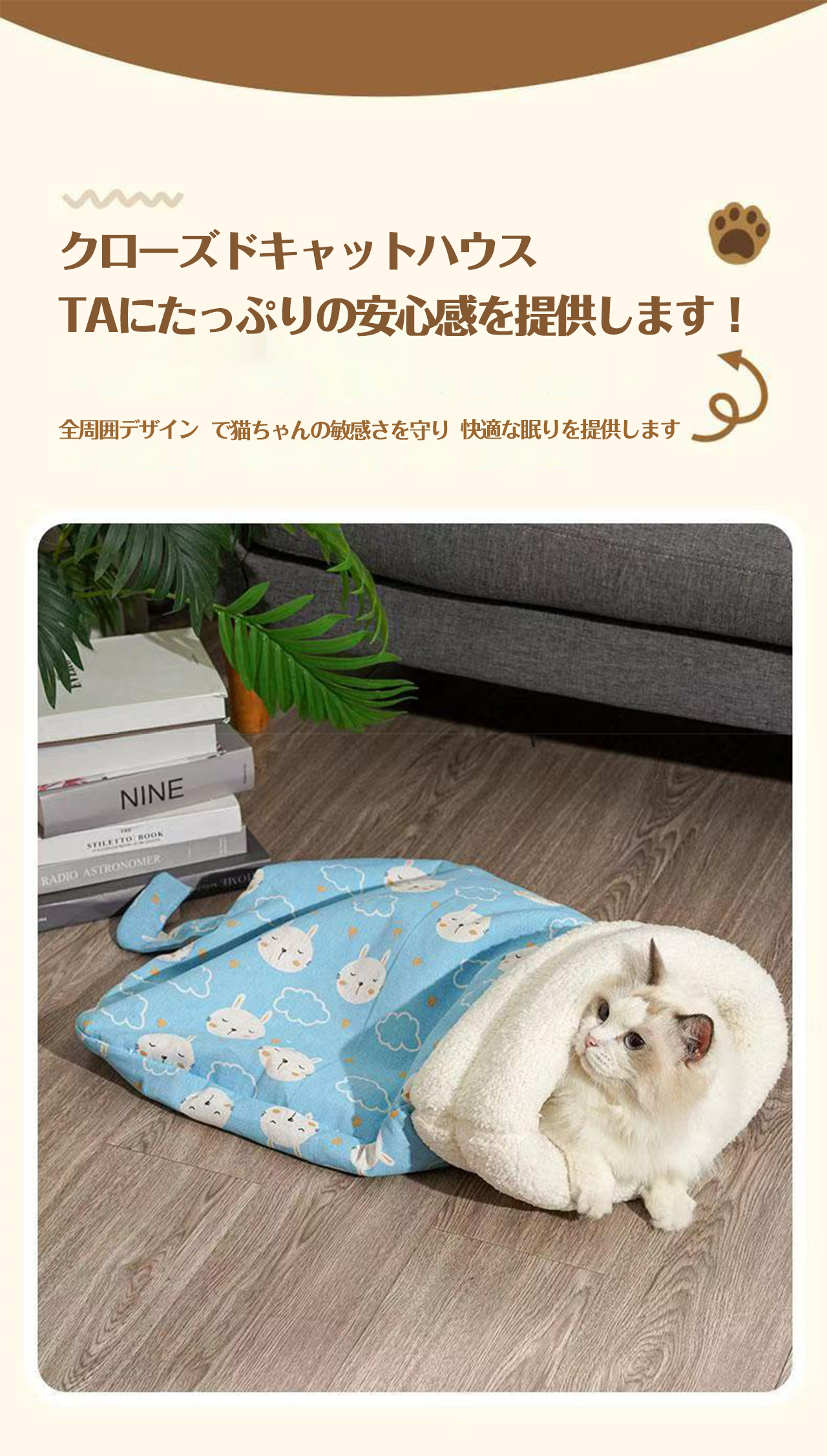 ■ 品名:布団型ハーフクローズ猫ベッド