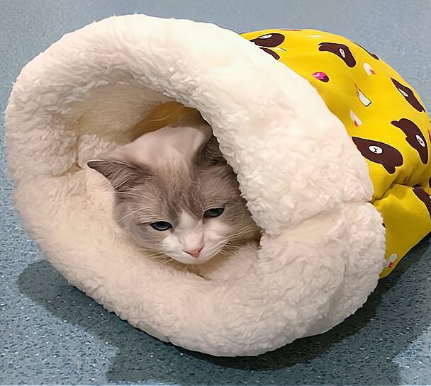 96 .布団猫の巣、トンネル猫の巣、冬用の猫用ベッド、密閉式猫ベッド、子猫用のクッション、毛マット、猫の寝袋、あったか寝袋 ペット用、小型犬用猫用マット、 寝袋寒さ対策ふわふわふとん | COCOFID