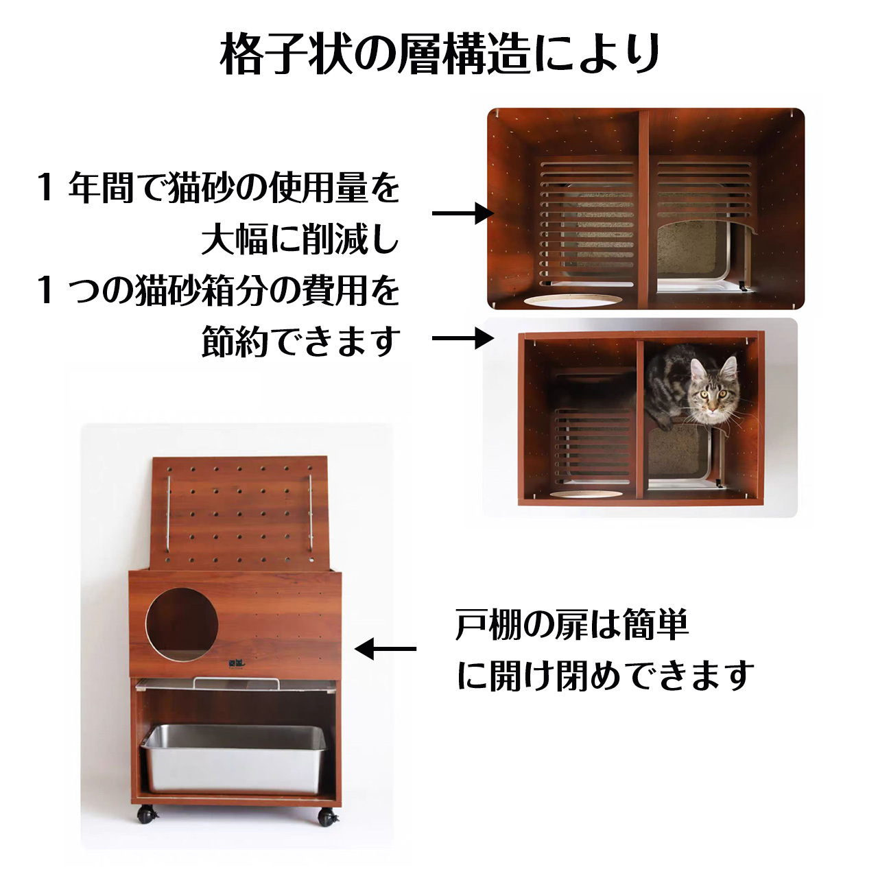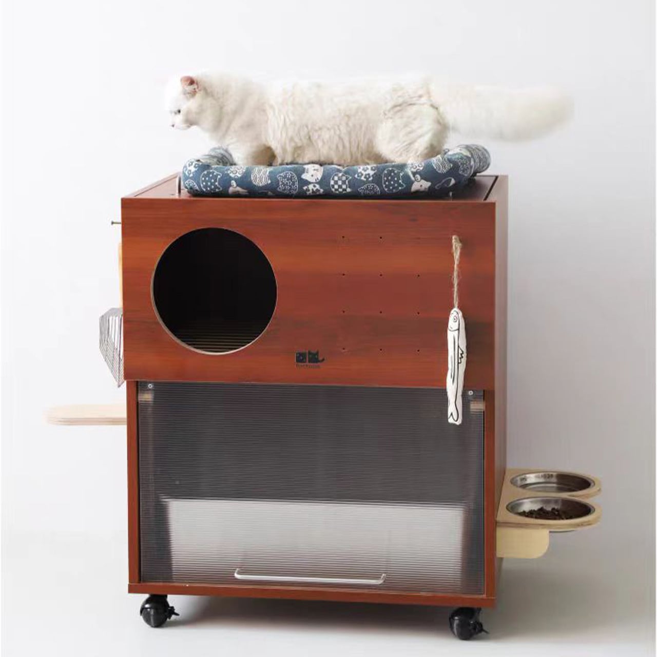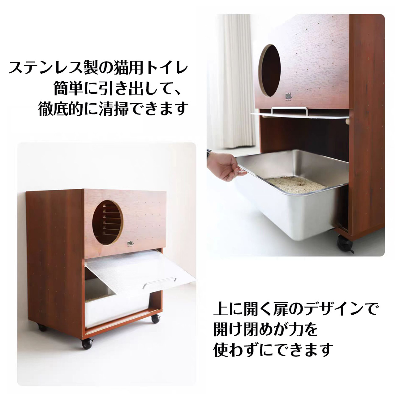 猫用トイレだけでなく、ベッドや収納ボックスとしても活用可能。インテリアにもなじむ木製デザイン。