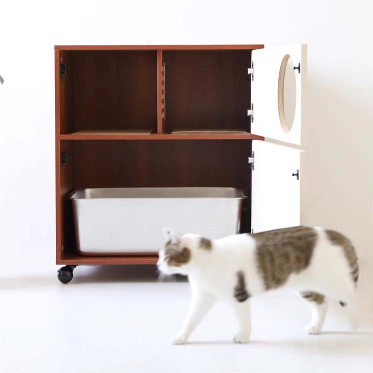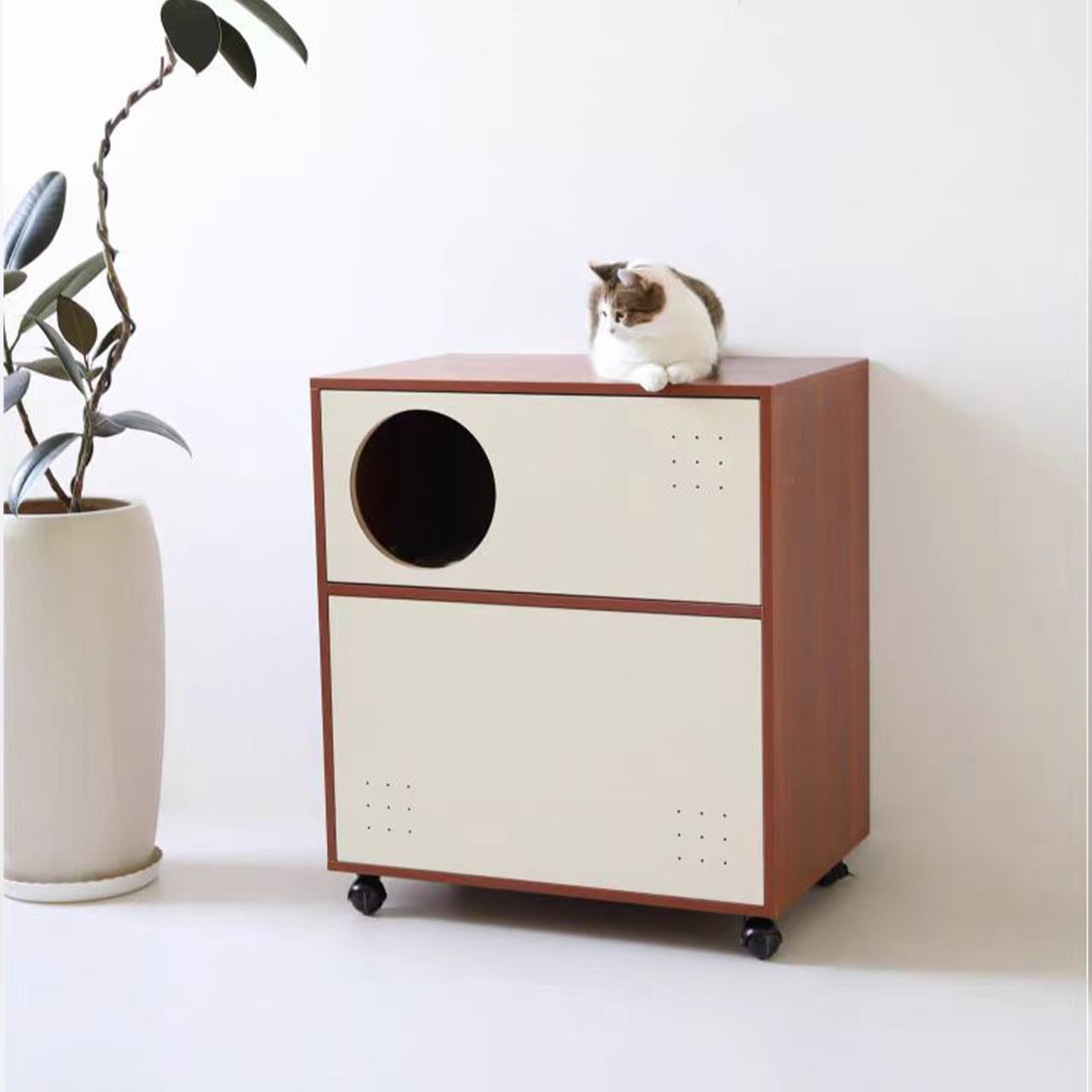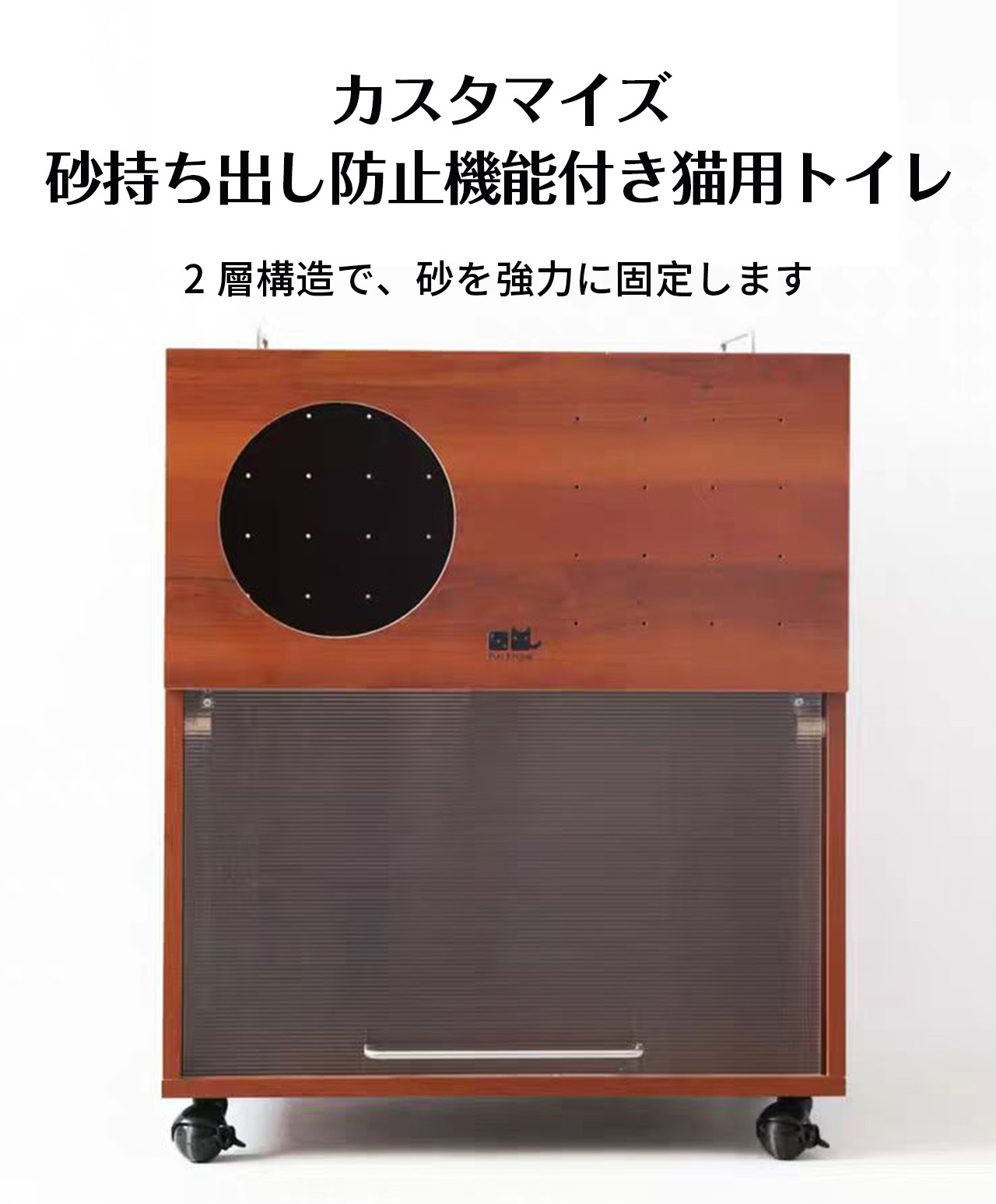 猫用トイレだけでなく、ベッドや収納ボックスとしても活用可能。インテリアにもなじむ木製デザイン。
