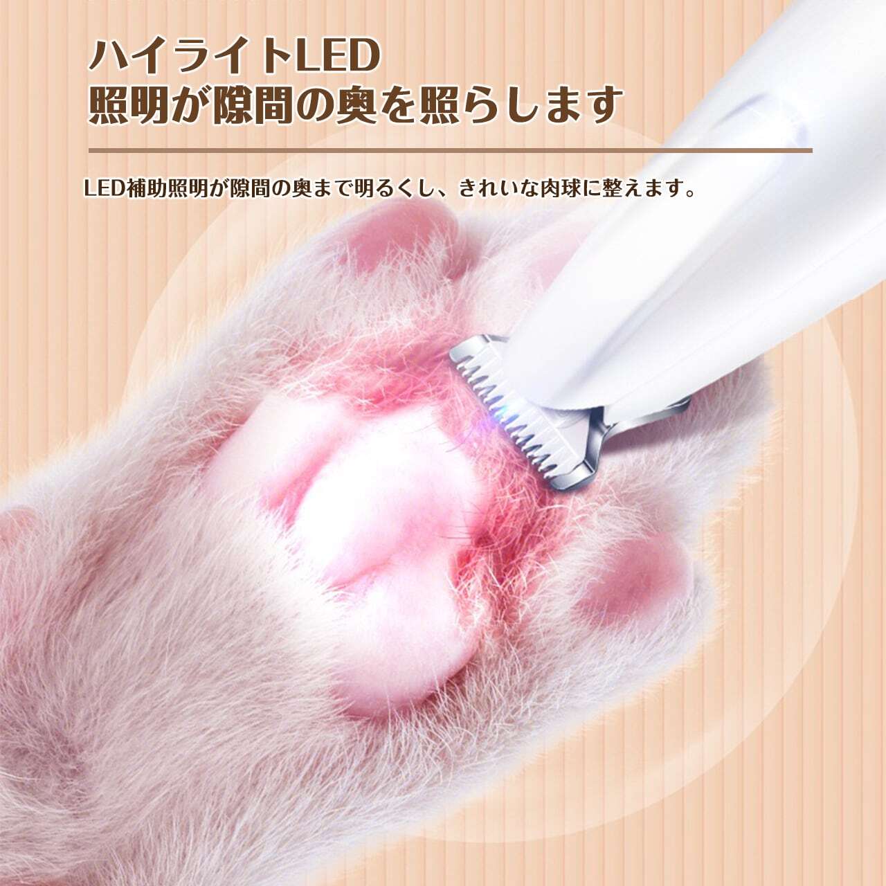 トリミング:LEDライトを点灯し、毛の流れに沿ってやさしく滑らせるようにカット