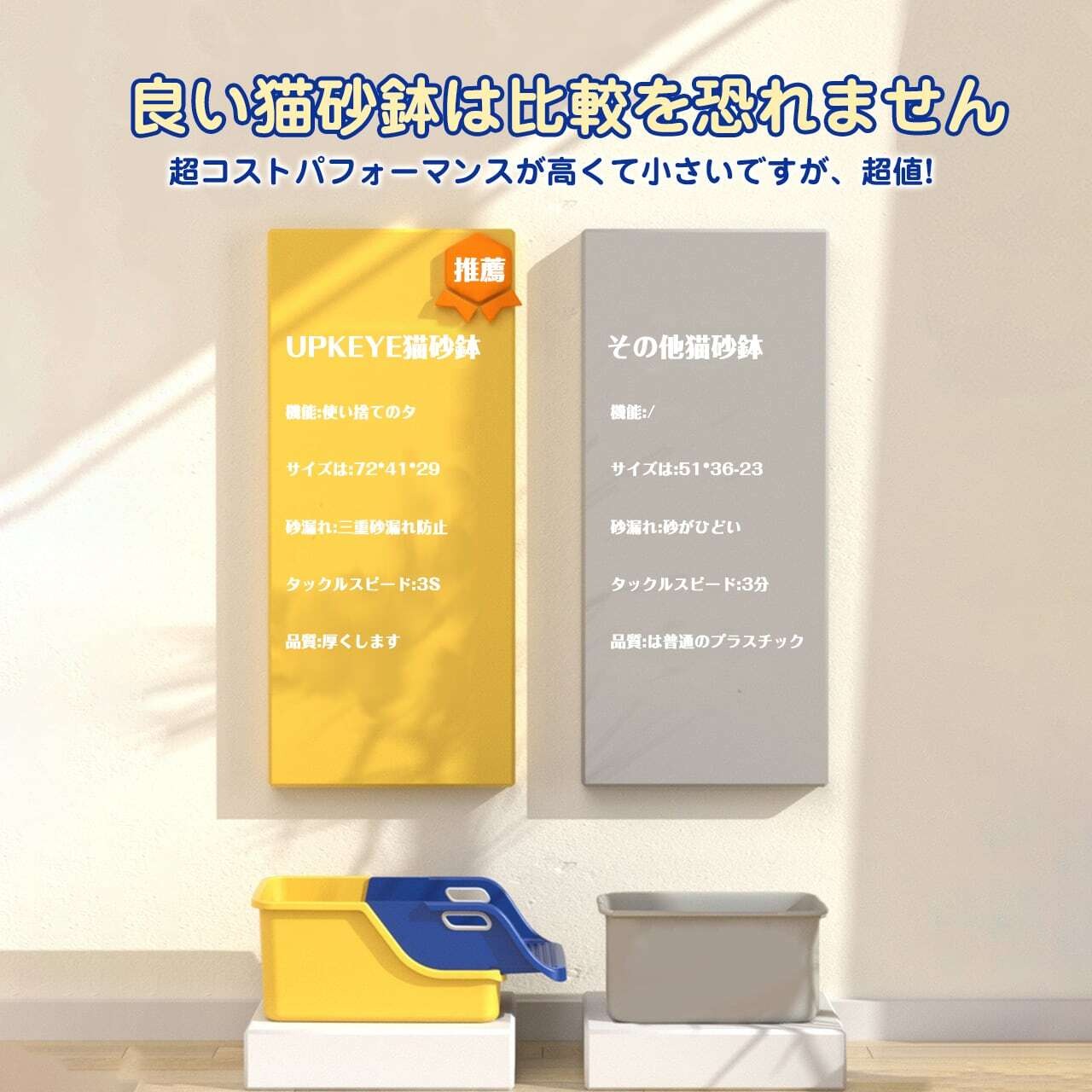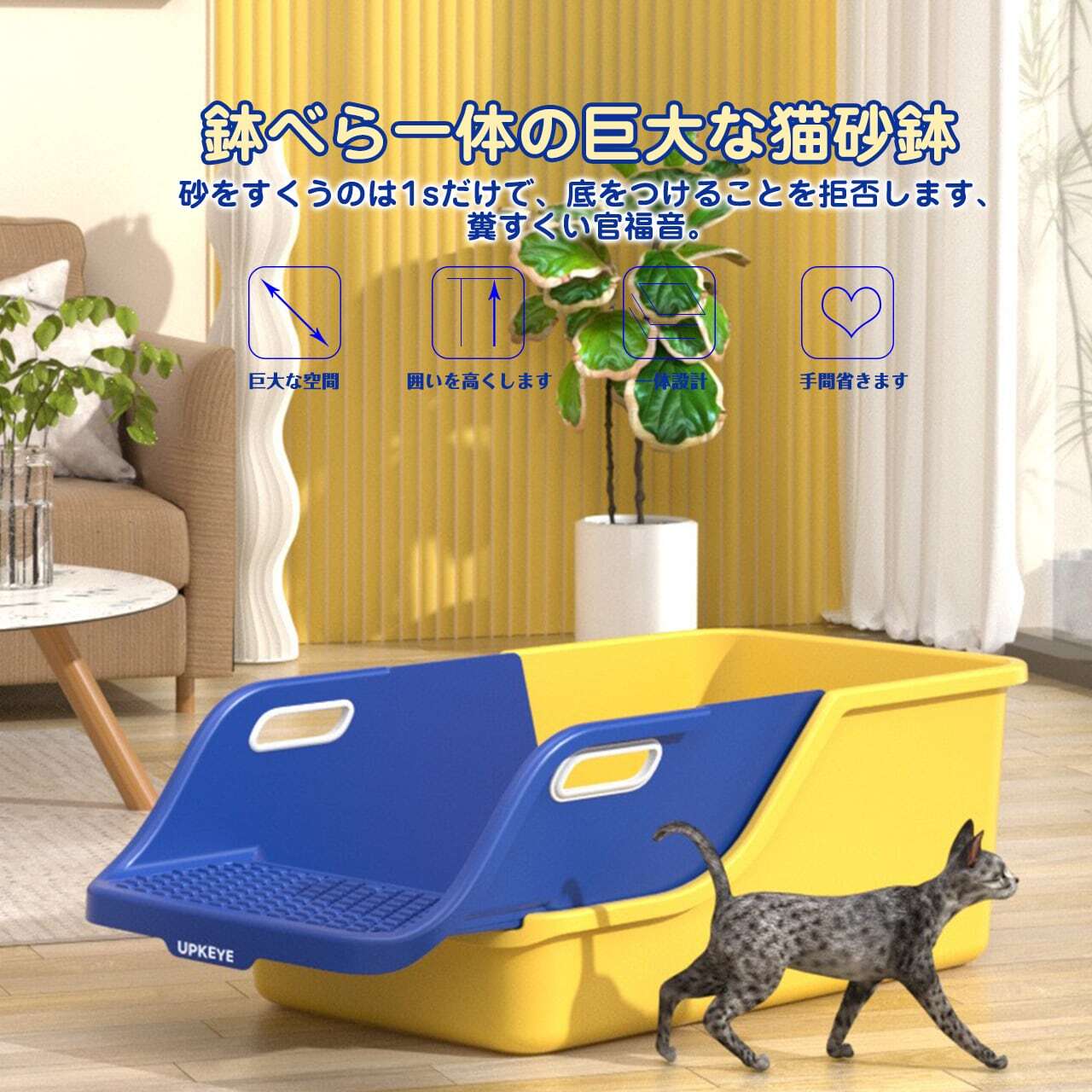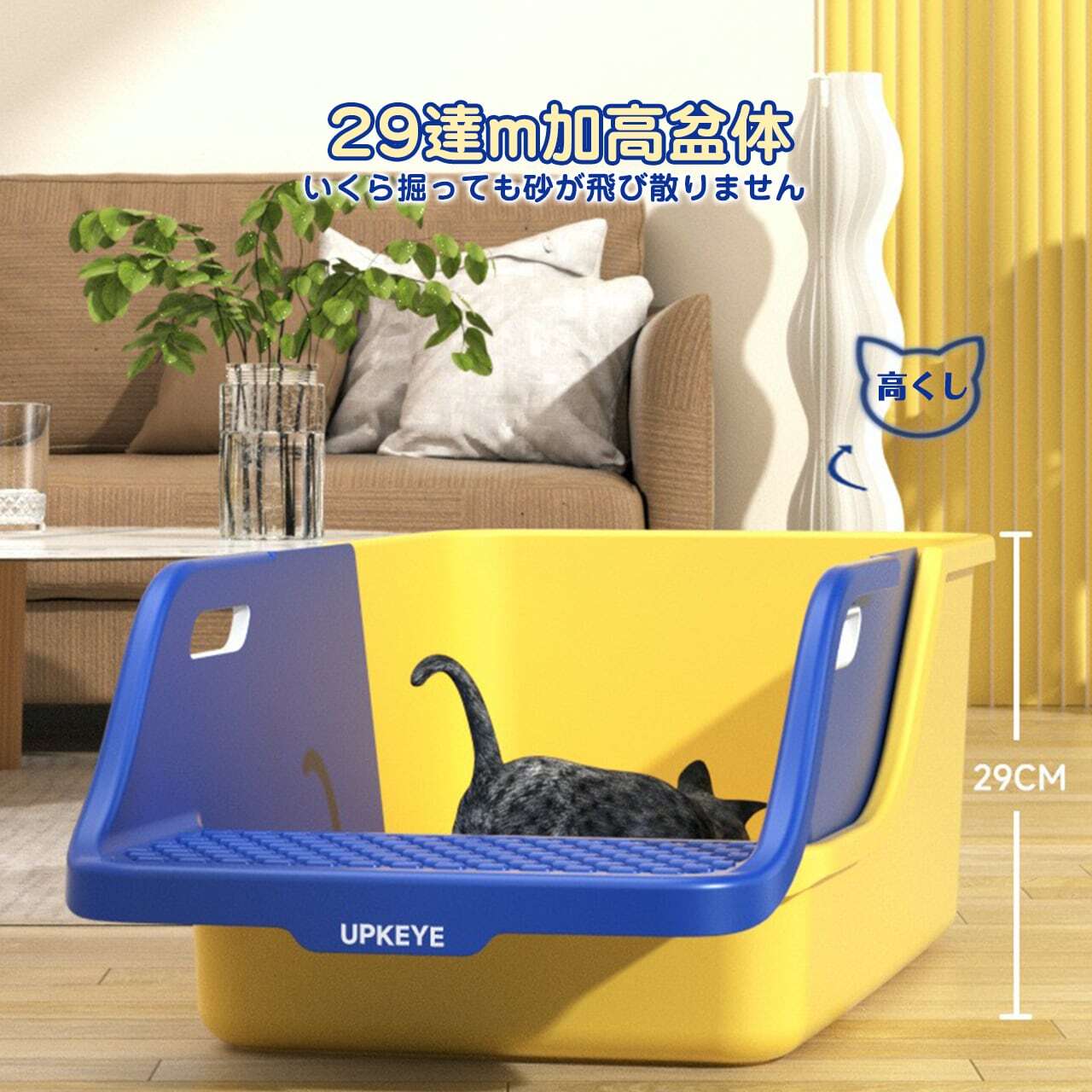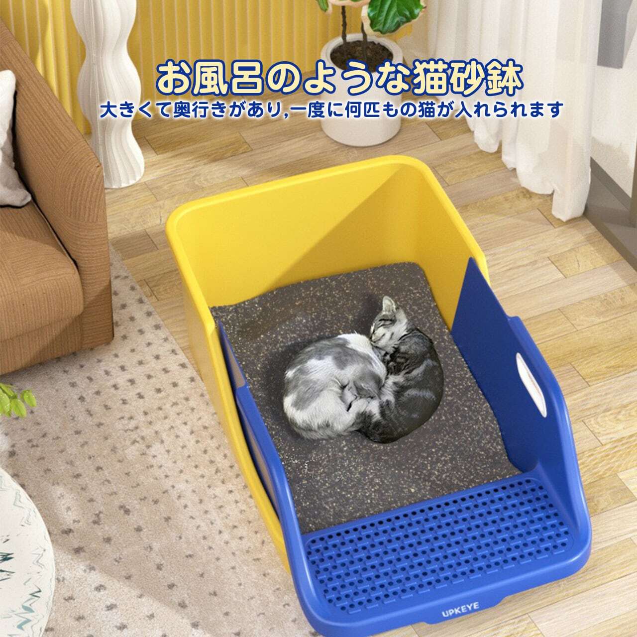 147 . 猫トイレ 猫用トイレ本体 オープンタイプ キャットトイレ 半密閉型 ペットトイレ ポータブル猫砂トレイ 猫砂ボックス スコップ付き 子猫から成猫まで使える 清潔 掃除しやすい 飛び散らない(適用:成猫と子猫;サイズ:72*41*29cm) | COCOFID