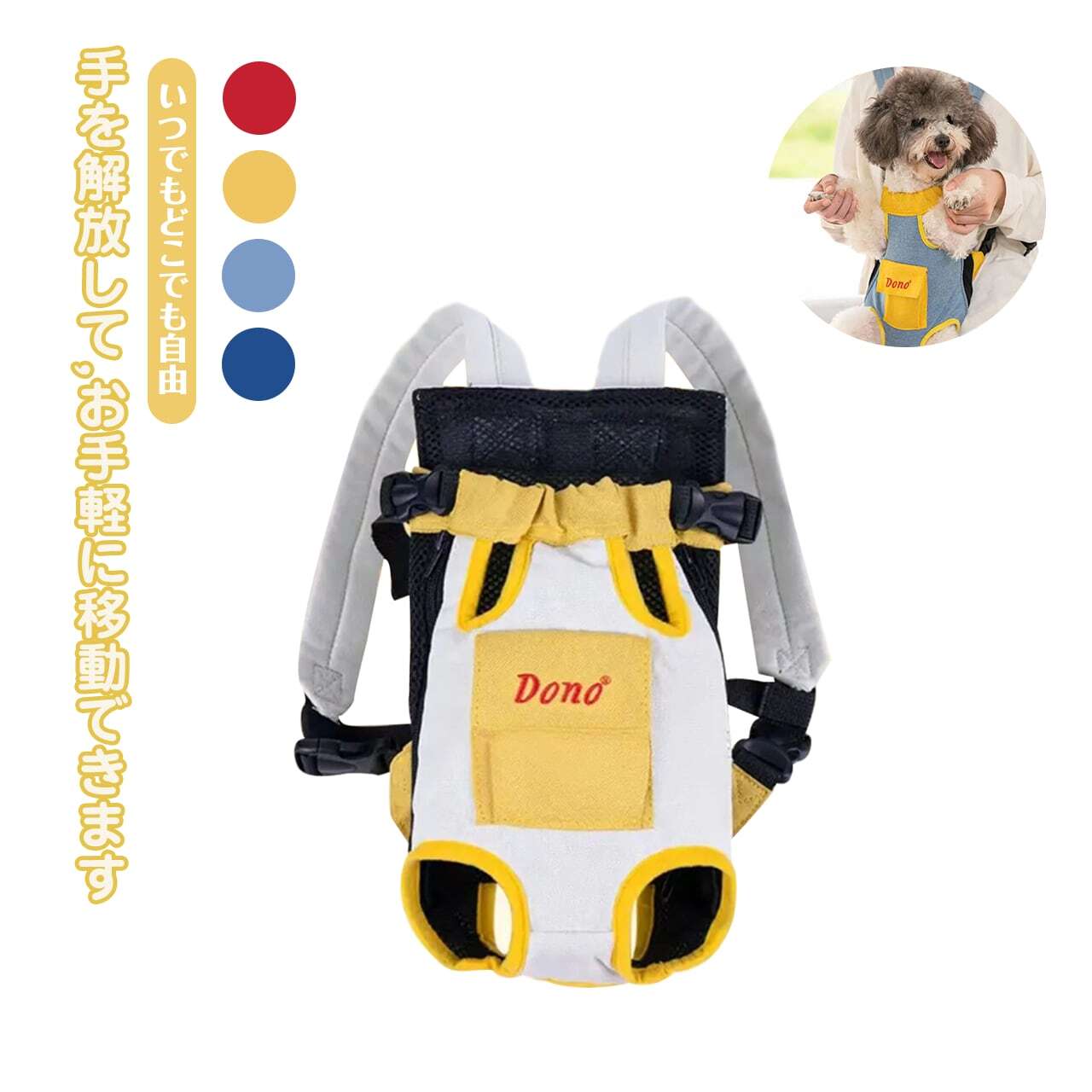20 .ペットのバッグ犬のバッグ携帯旅行の両肩の調節可能なリュックサック外出の通気性のネットの布の前と後ろの4つの足のリュックサックを背負います(S/M/L/XL/XXL;赤白/濃い青赤/白黄/薄い青黄) | COCOFID