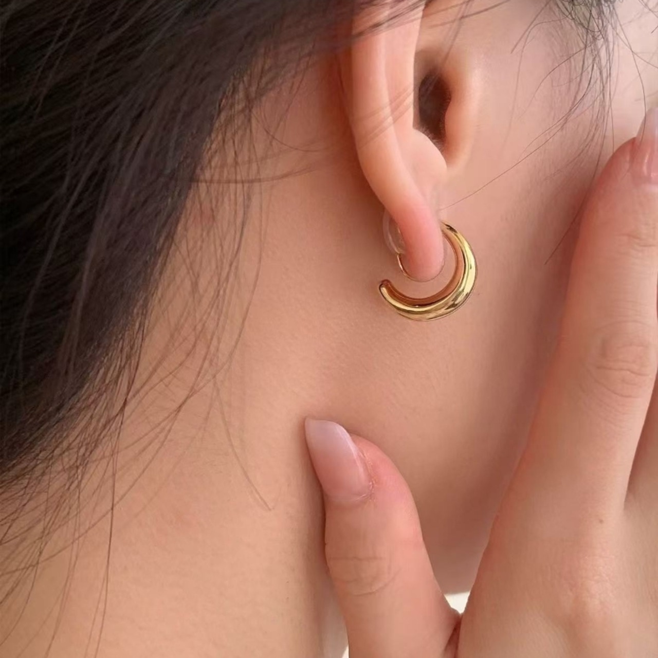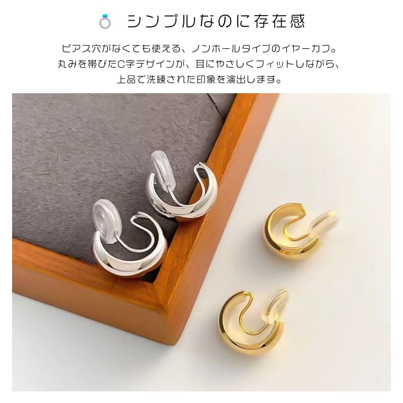 耳元に小さな輝きを。シンプルで上品なC型デザイン。