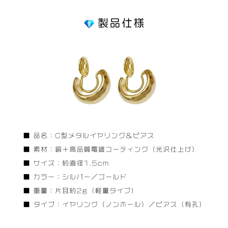 ■ 品名:C型メタルイヤリング&ピアス