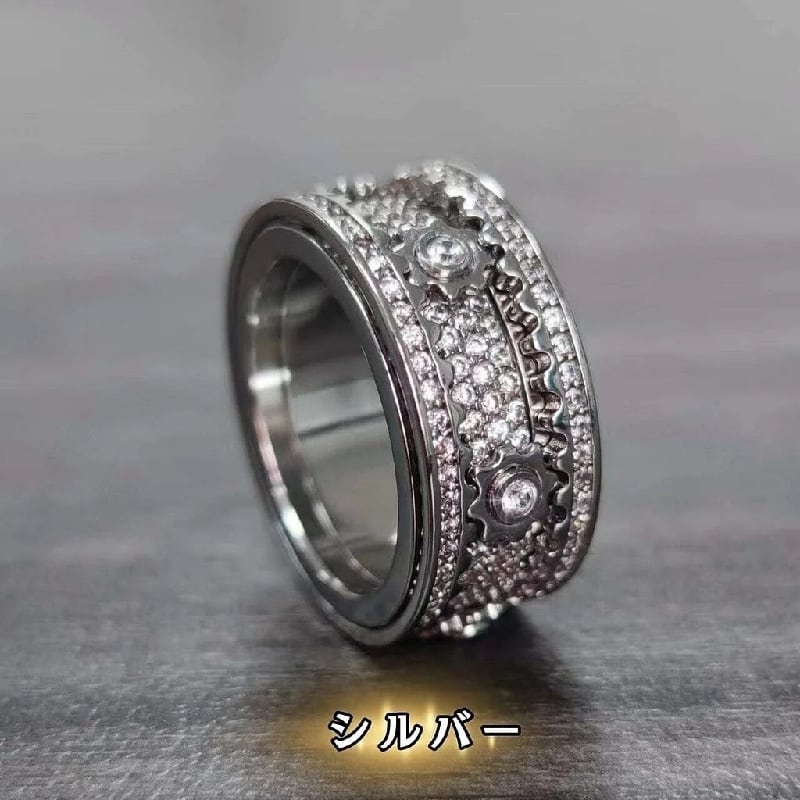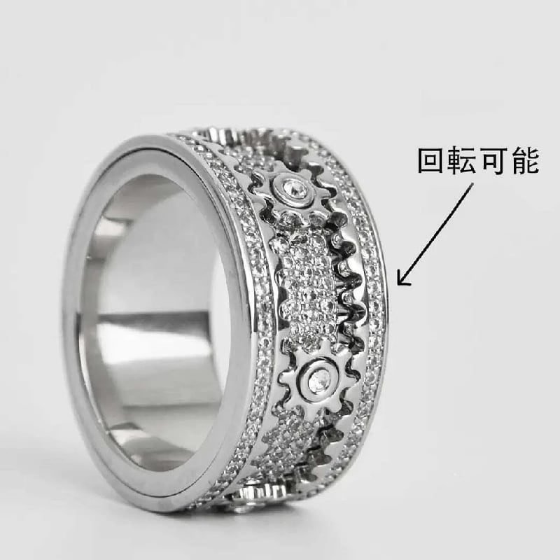 Y 107 . 精巧な回転ギアリング 指輪 メンズ レディース 不安緩和 リング ファッション アクセサリー プレゼント用