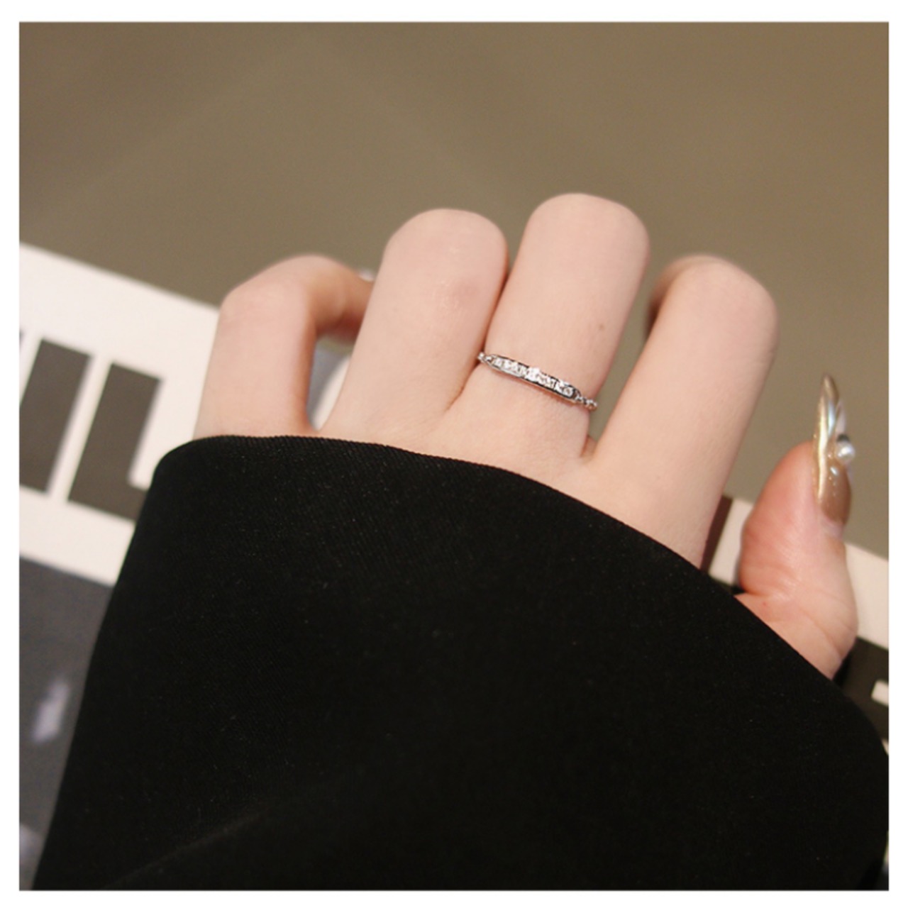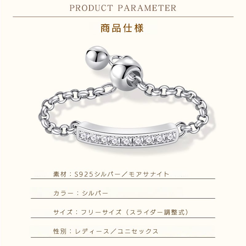 チェーンタイプなので指に自然に馴染み、長時間着用しても快適。