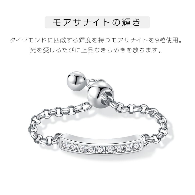 ダイヤモンドに匹敵する輝度を持つモアサナイトを9粒使用。