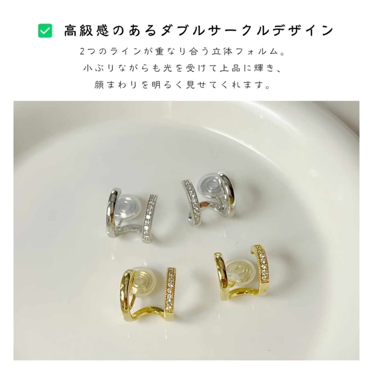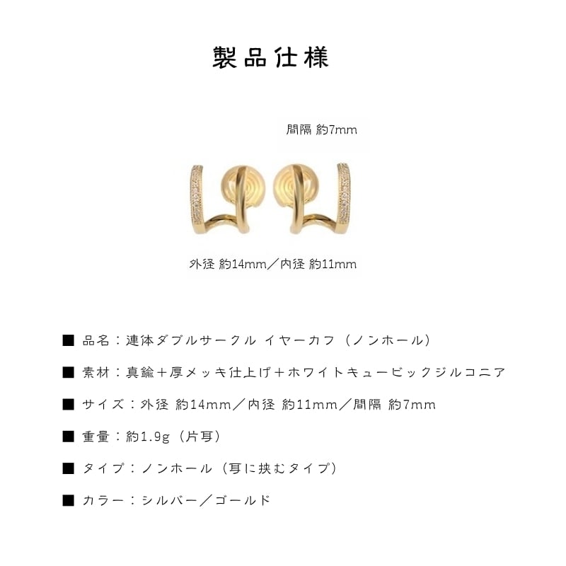 ■ 品名:連体ダブルサークル イヤーカフ(ノンホール)