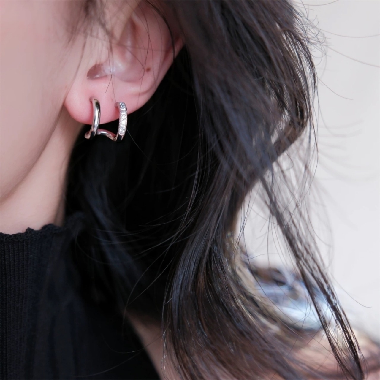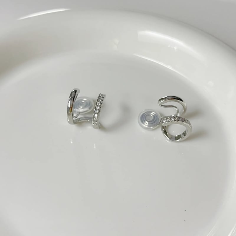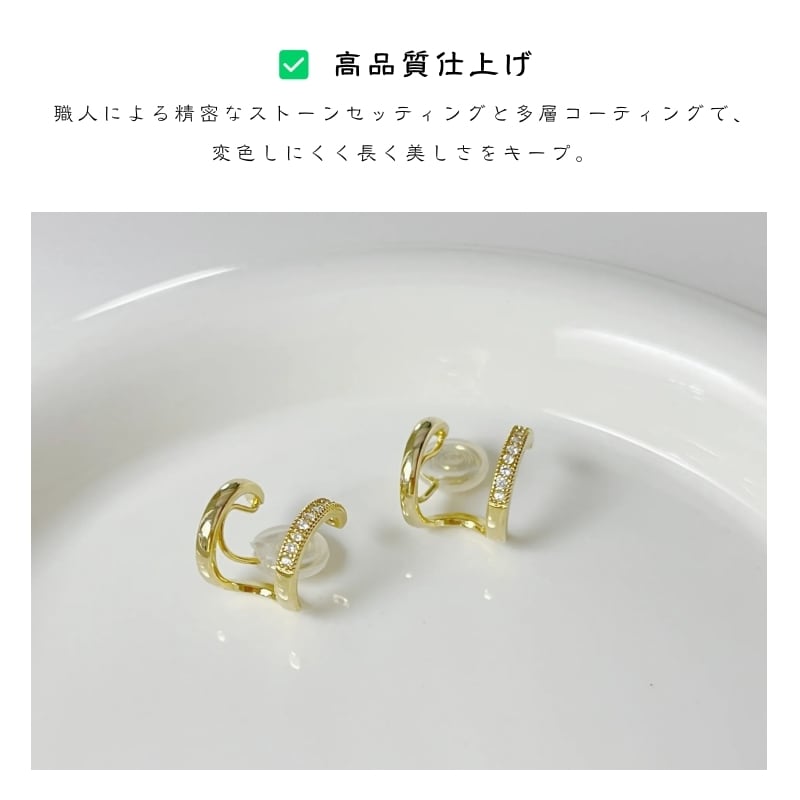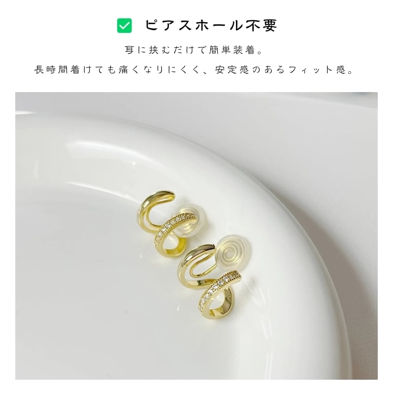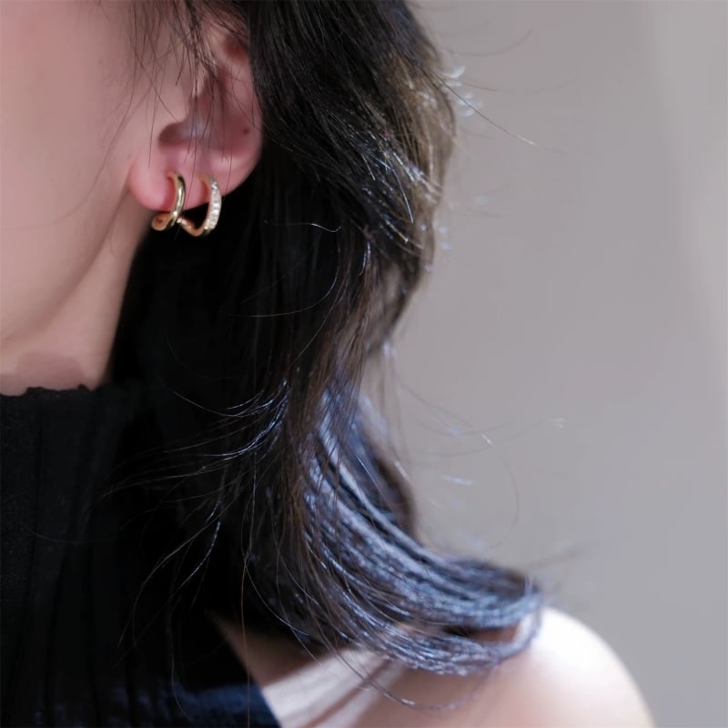 耳元にさりげない輝きを添える、連体ダブルイヤーカフ。