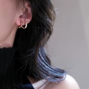 2つのサークルが重なり合うような立体的デザインで、耳元に上品な存在感をプラスします。