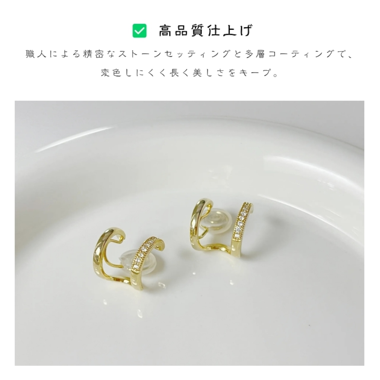 ピアスホールがなくても着用できるノンホールタイプ。