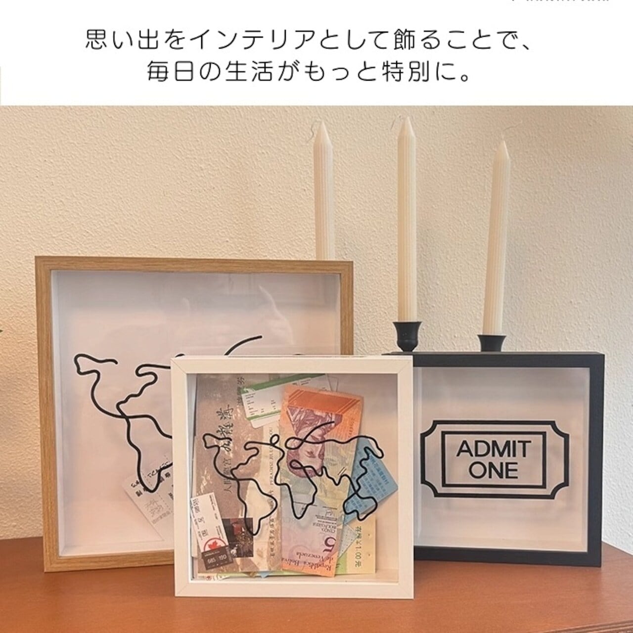 旅行チケットや映画の半券、ライブ入場券、思い出の写真、紙幣やコインまで、大切な「人生の瞬間」をスタイリッシュに残せる透明フレーム型収納ボックス。