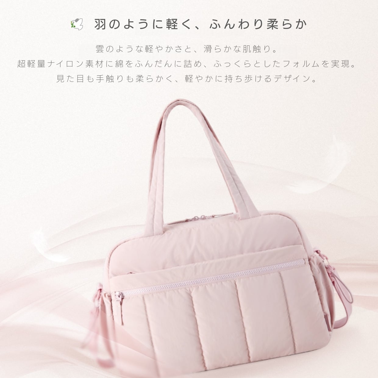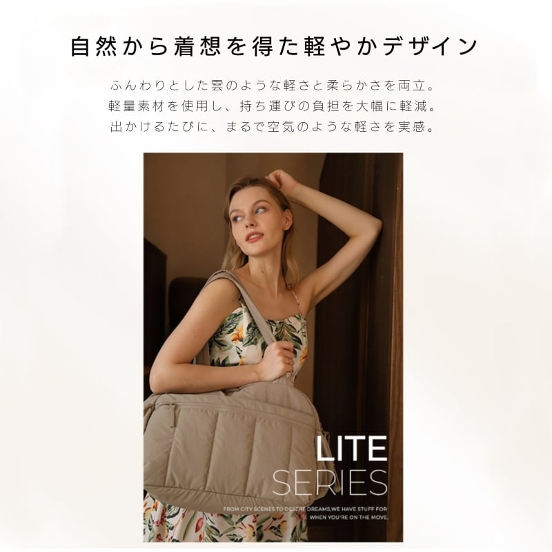 ふんわりとした質感と超軽量デザインで、まるで雲を持ち歩くような軽やかさ。