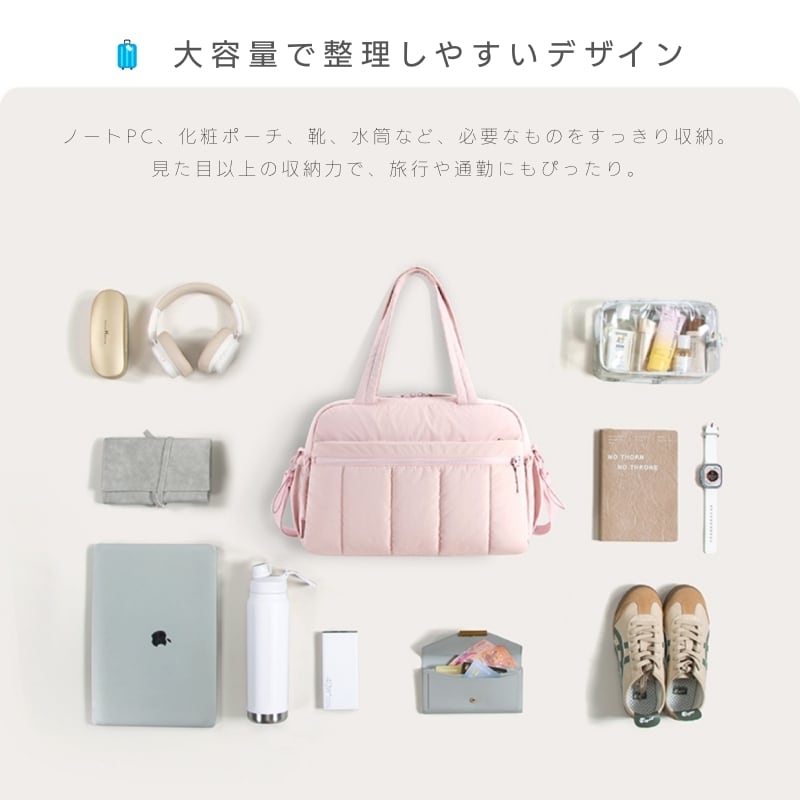 出張や旅行、ジムや日常使いにもぴったりの多機能トートバッグです。