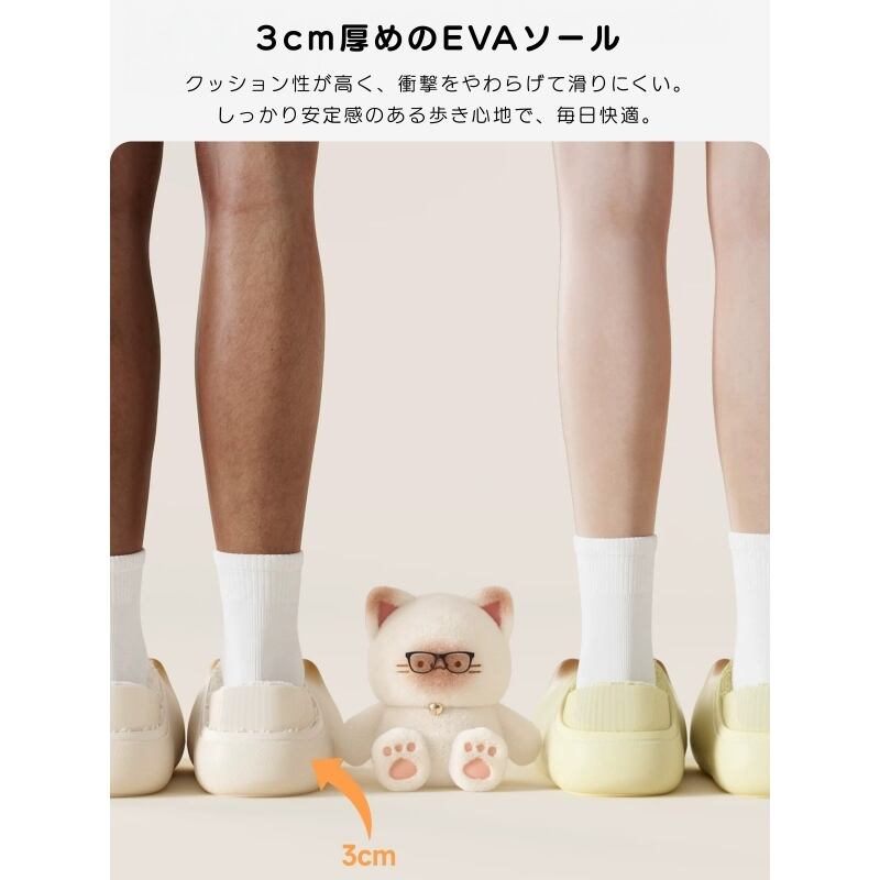 衝撃吸収・防滑・安定感のある3cm厚底。肉球模様のソールで滑りにくく、