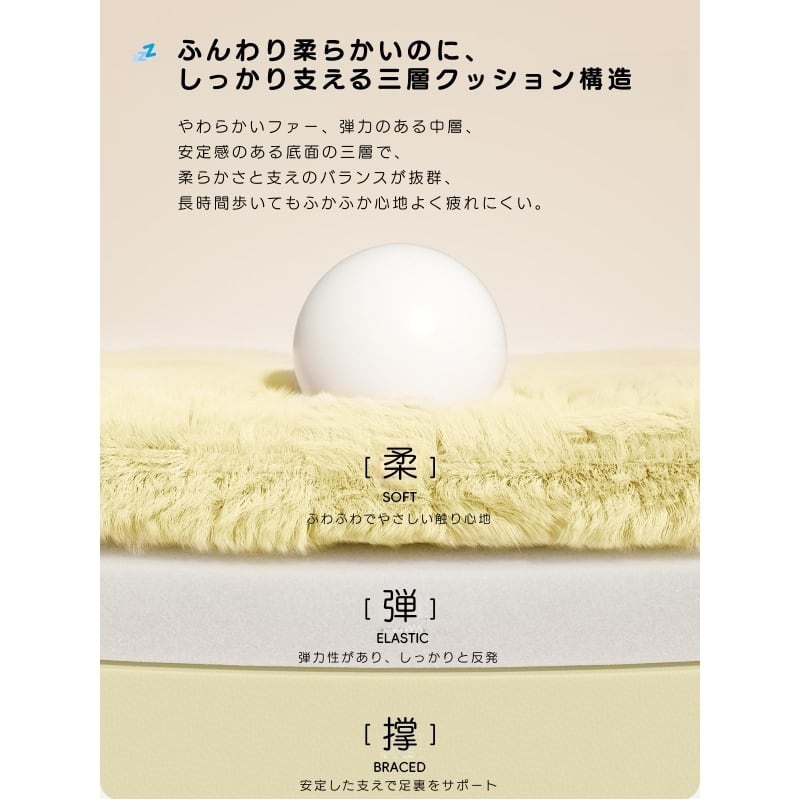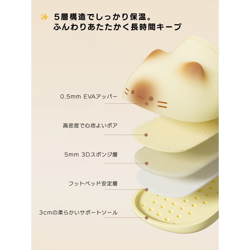 ふわふわ裏起毛+3D海綿+安定層+EVA厚底の5層設計で、