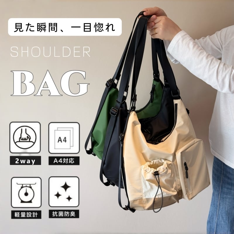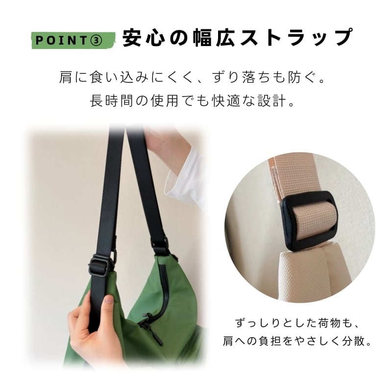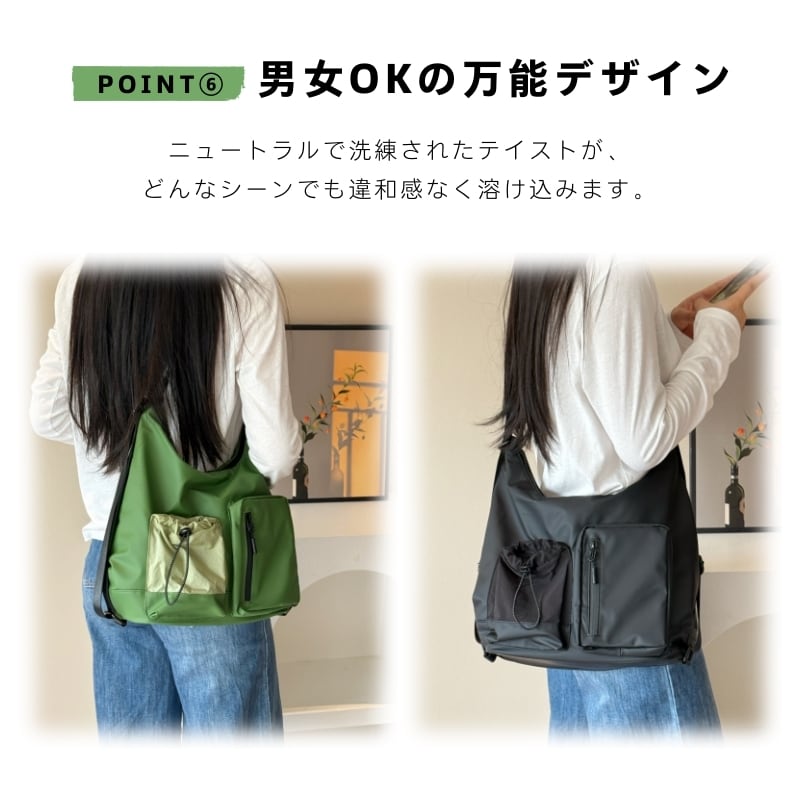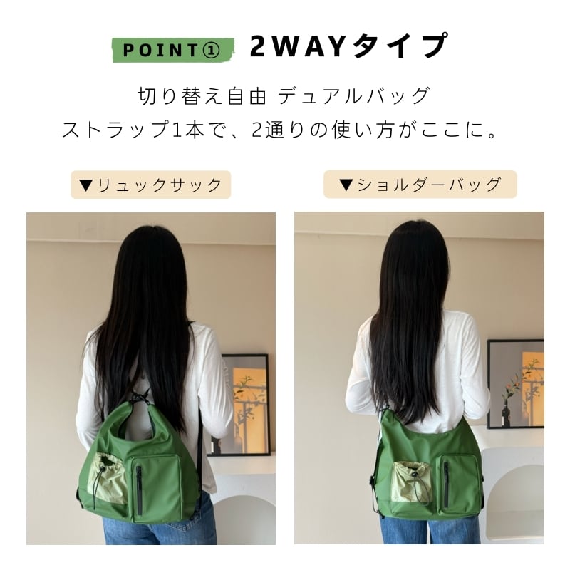 一本のストラップで、ショルダー(单肩)/斜め掛け(斜挎)/リュック(双肩) の3通りの背け方を自由に切り替え。その日の荷物量、服装、気分に合わせて、最適なスタイルを選べます。
