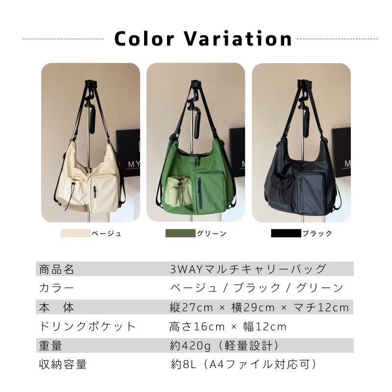 ♥ シーンに合わせて自由に変形!軽量で大容量な3WAYマルチキャリーバッグ