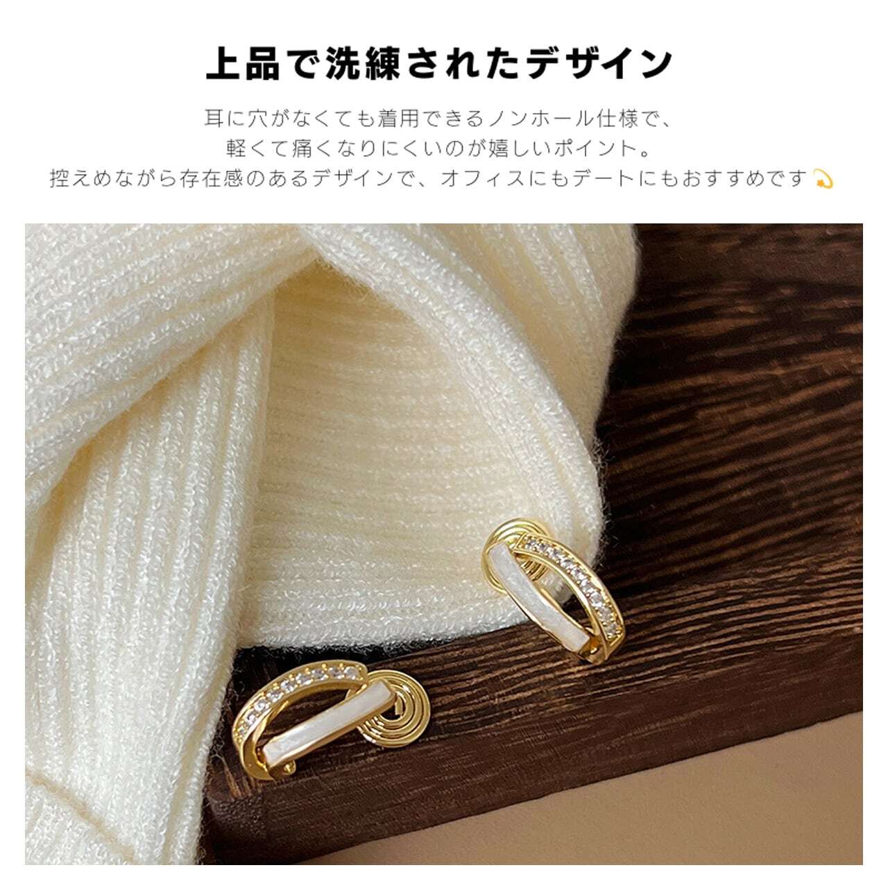耳穴がない方には「イヤーカフタイプ(ノンホールピアス)」をご用意。