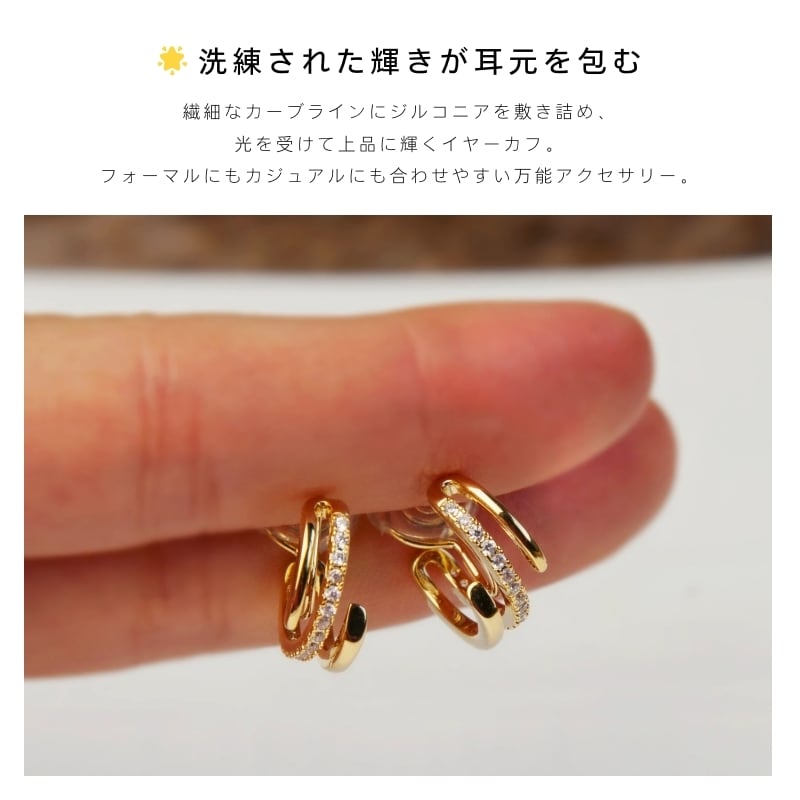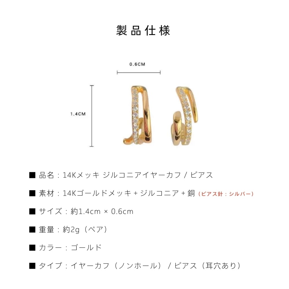 ■ 品名:14Kメッキ ジルコニアイヤーカフ/ピアス