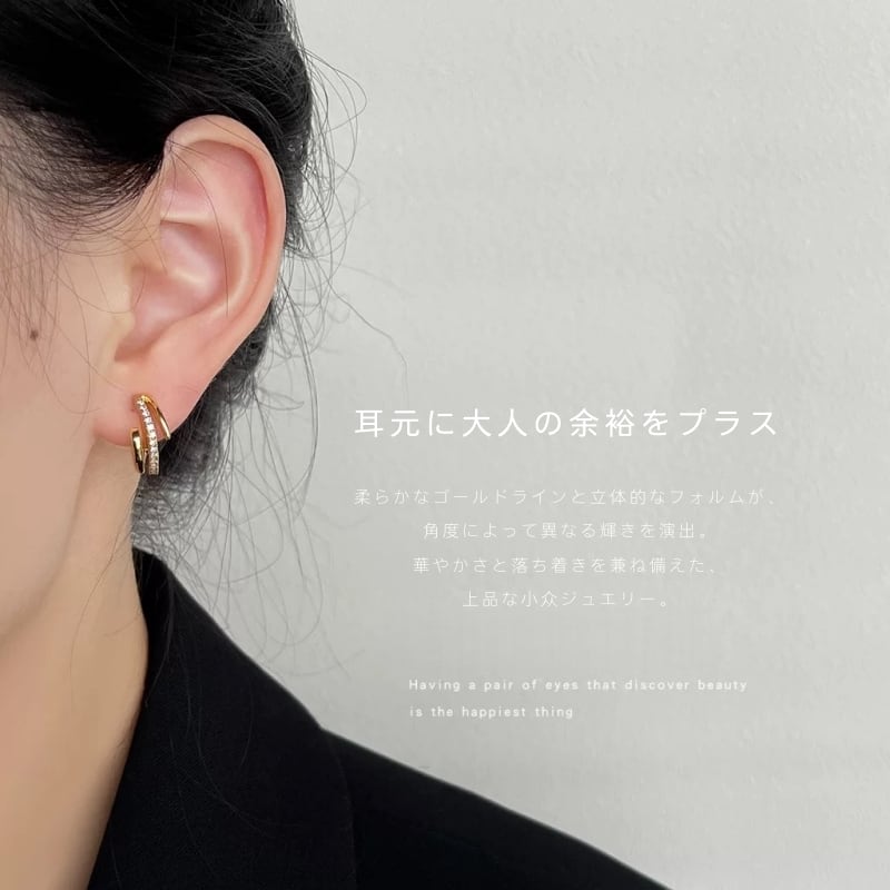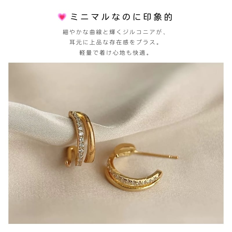 14Kゴールドの輝きと繊細なジルコニアが織りなす上質なイヤーアクセ。