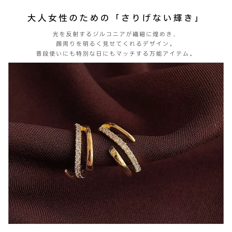 14Kゴールドメッキ特有のやわらかいツヤと高透明度のジルコニアが、耳元を美しく引き立てます。