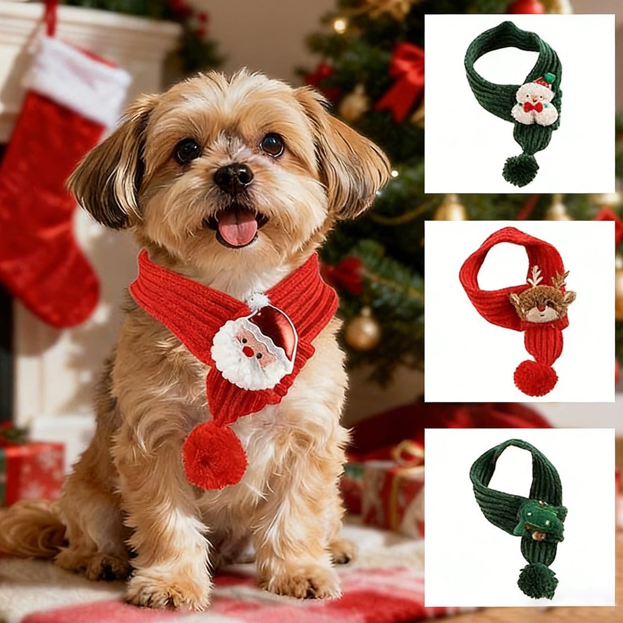 484 .犬用 猫用 マフラー ネックウォーマー ボンボン サンダ トナカイ ドッグウェア ペットウェア 小中型 犬猫用 ニット製 犬猫スカーフ ペット用品 秋冬 防寒 クリスマス ペット用品 | COCOFID