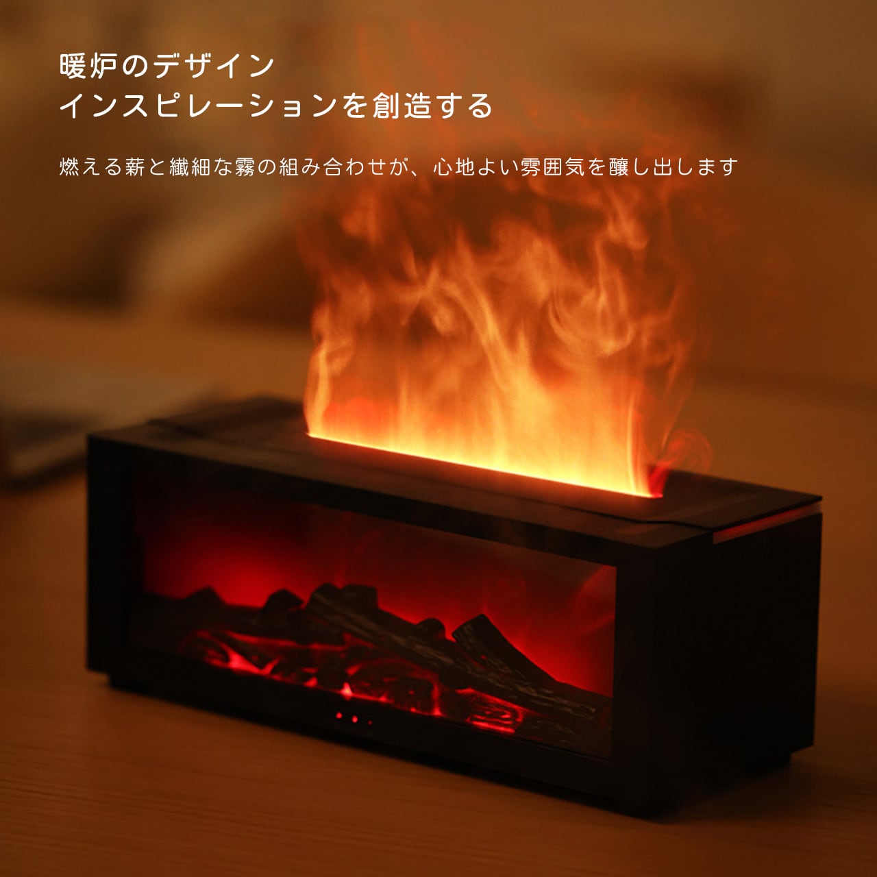 B271 .ミニストーブ トップアロマディフューザー 暖炉スタイル エッセンシャルオイル対応 難燃性 ファッション加湿器 7 色 LED 搭載 3 段階タイマー 缺水自動停止 大容量 Type-C 電源 リモコン付き | COCOFID