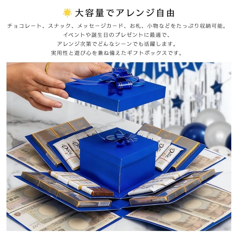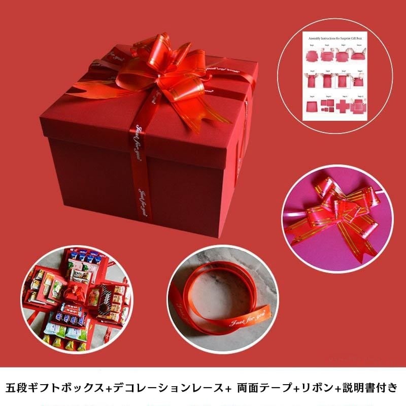 Y 165 . 爆発サプライズボックス 誕生日 驚きギフト 5層ビッグプレゼント箱 お菓子入れ 写真カスタム可 手作りキット付き 誕生日 記念日 メッセージカード収納 子供から大人まで 贈り物 プレゼント | COCOFID