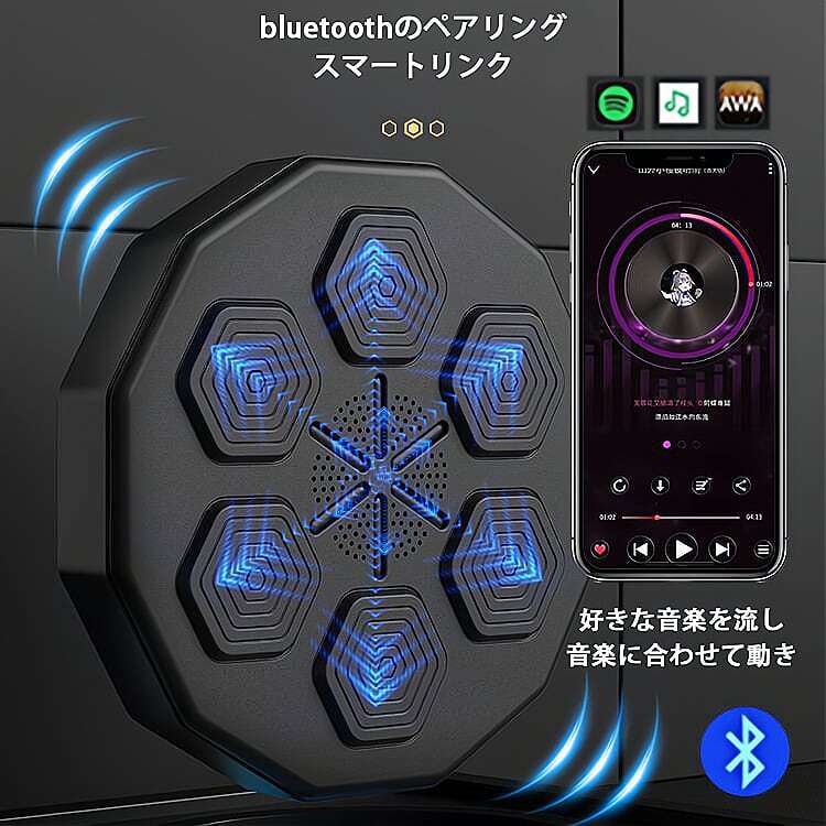 モバイルアプリを介して、音楽との連動も可能であり、トレーニング中にリズムに合わせてパンチをすることができます。