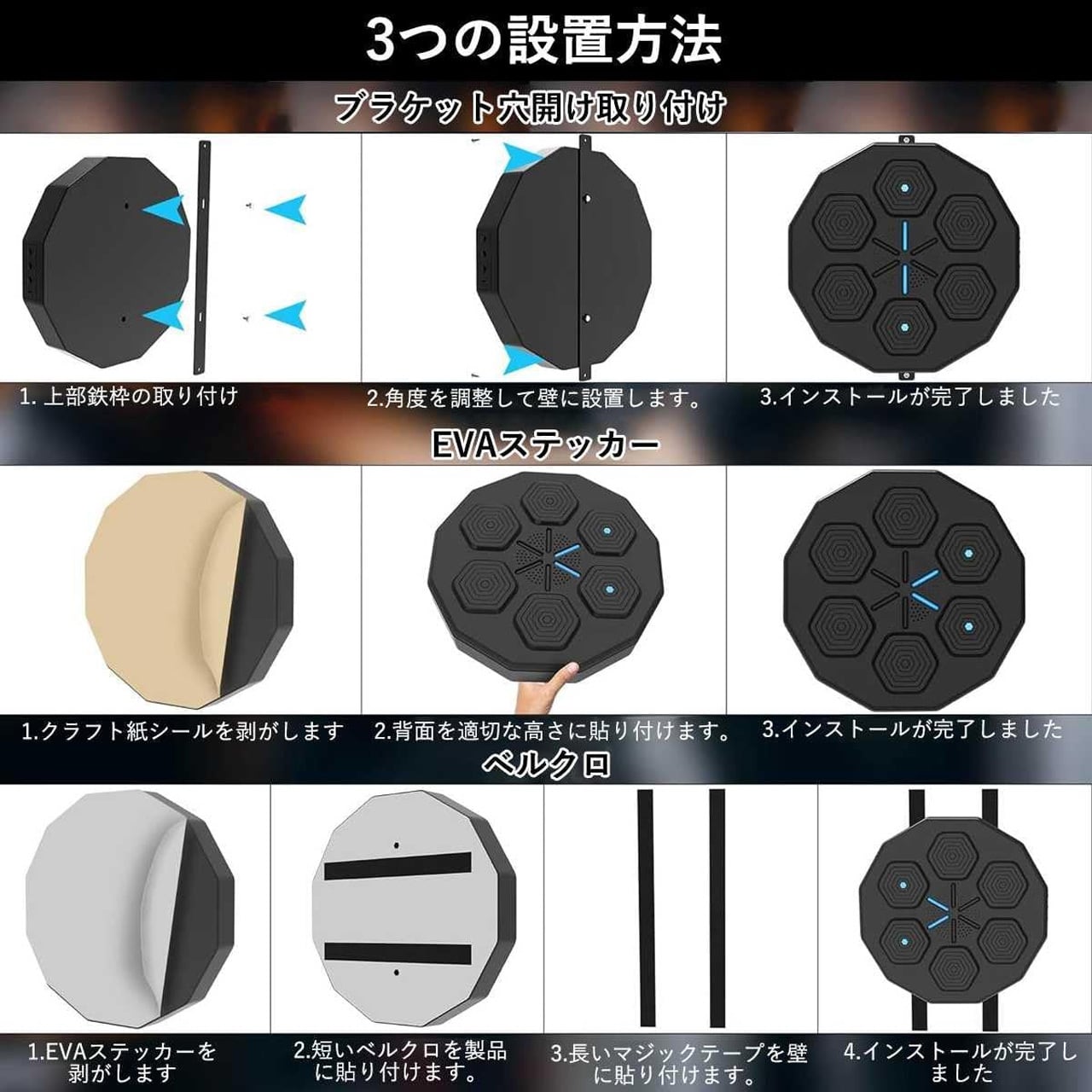 A 1-2 .スマート音楽ボクシングマシン、ボクシングのウォールターゲット、電子反応性ウォールターゲット、弔り下げ式の機材、black(マジックテープで取り付け、パンチフリー、グローブが入ってい、マジックテープを無料で配ってい) | COCOFID